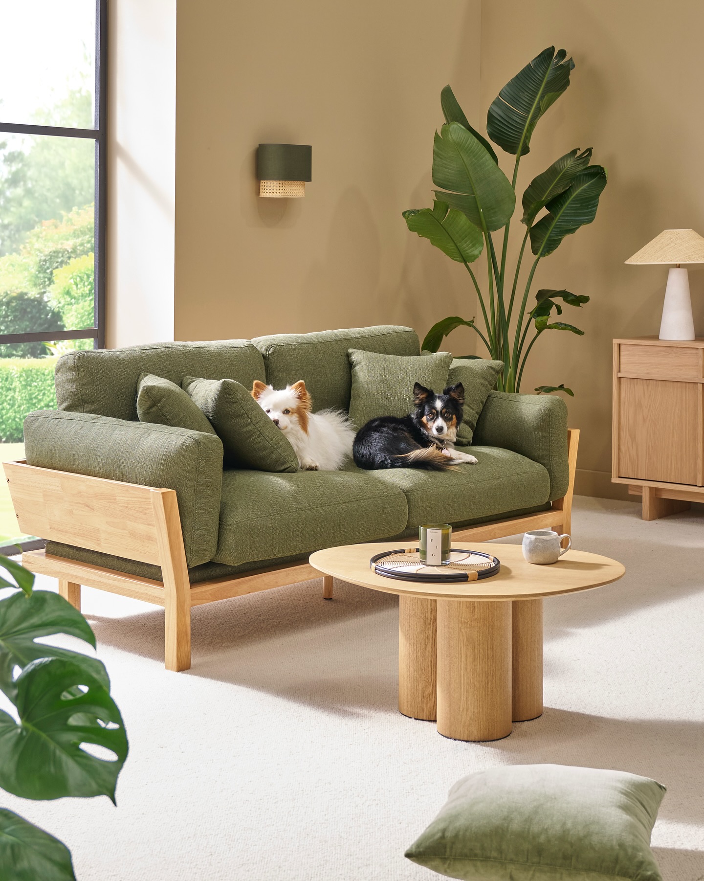 Miliboo Canapé Design|Voir Tous Les Canapés-Canapé scandinave déhoussable 3 places en tissu beige et bois clair OSLO