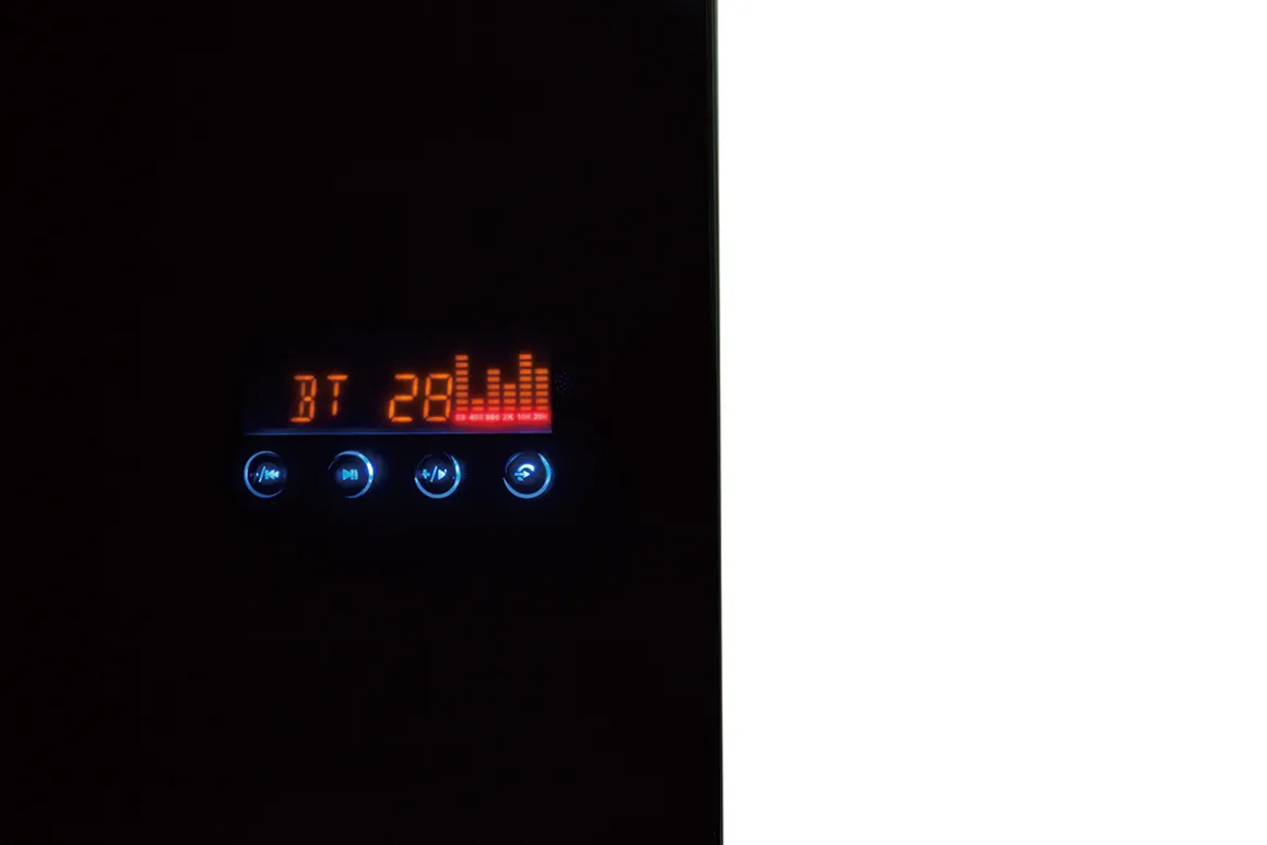 Le bureau dispose de deux prises USB, grâce auxquelles vous pourrez recharger votre tablette, smartphone. De plus, des enceintes sont intégrées au bureau. Le son est d’une qualité excellente et vous vous pouvez régler le volume, changer de chanson, mettre la piste en pause depuis l’interface tactile intégré au plateau. L’enceinte est accessible par bluetooth afin de pouvoir envoyer de l’audio directement depuis une tablette, un ordinateur ou un smartphone.