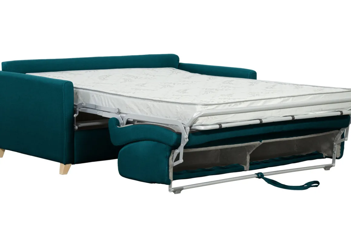 L’atout du canapé convertible bleu paon SKANDY, c’est avant tout son matelas intégré (140 x 190 cm), un véritable lit d’appoint 2 places qui offrira tout le confort nécessaire à vos convives. Il suffit d’abaisser le dossier pour découvrir un agréable couchage deux personnes. Grâce à son système express, ce canapé-lit 3 places bleu paon se déplie et reprend sa forme initiale très facilement. Parfaitement adapté aux séjours où chaque m², ce petit canapé convertible (dimensions L176 x P99 x H92 cm) possède également deux espaces de rangement intégrés au dossier.