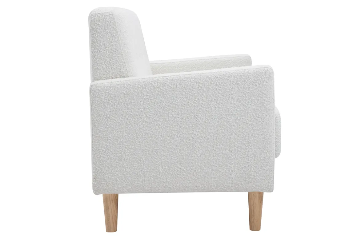Son piètement en hévéa massif apporte un côté nature et scandinave en plus de lui conférer une stabilité et un maintien parfait. Son assise épaisse offre un bon confort et promet des soirées agréables et cocooning devant la télévision. Ses petites dimensions sont parfaites pour agrémenter un petit salon ou une chambre. Ce canapé 2 places peut être accompagné de fauteuils scandinaves assortis.