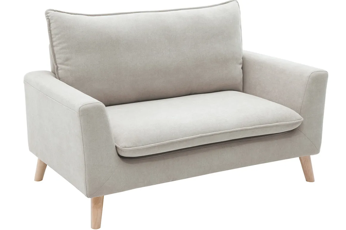 Avec ses dimensions L129 x P81 x H82.5 cm et ses galbes accueillants, ce petit canapé 2 places beige est un siège confortable adapté aux espaces les plus exigus. Un cocon de confort, doux et enveloppant qui sera parfait pour aménager un petit séjour ou un bureau.