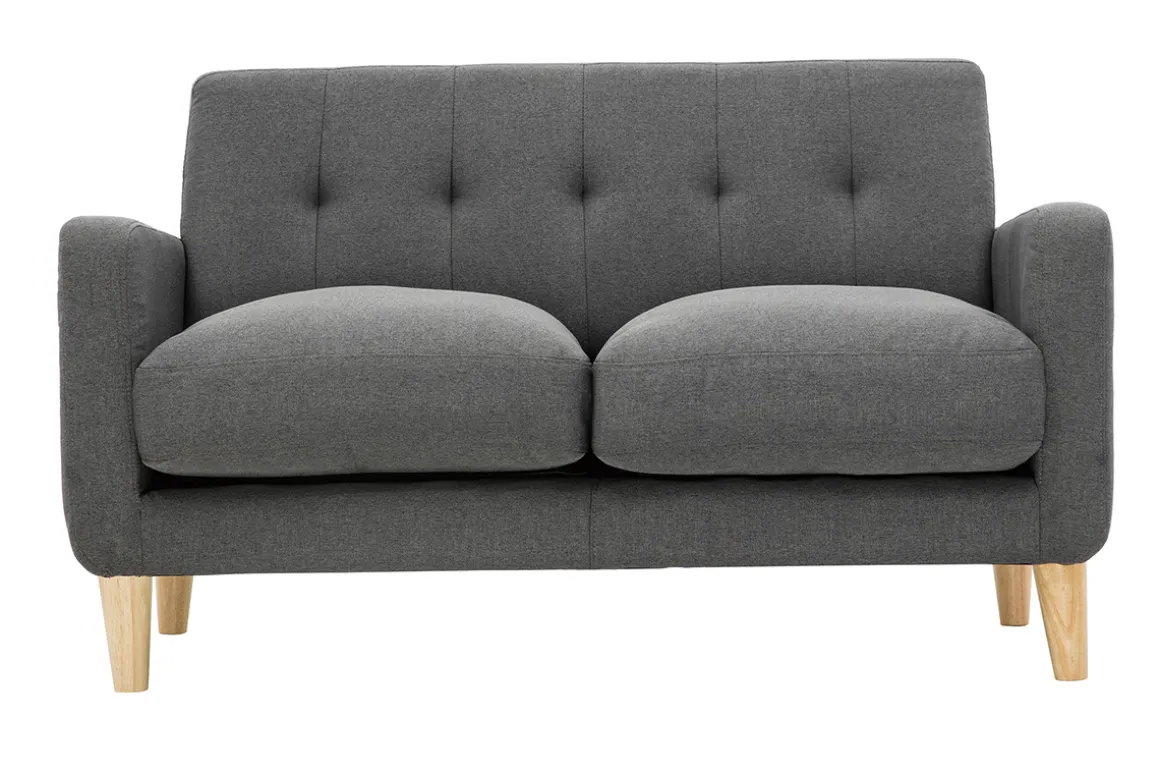 Avec le canapé LUNA, les studios et les petits séjours s’équipent d’une assise gain de place ultra déco. Ses jolies courbes et ses coussins moelleux transforment le salon en véritable petit cocon où il fait bon se détendre. Ce mini canapé aux dimensions L132 x P76 x H79.5 cm associe un chaleureux revêtement tissu gris foncé (100% polyester) et un piètement en bois massif. Il rassemble les essentiels pour un petit salon cosy.