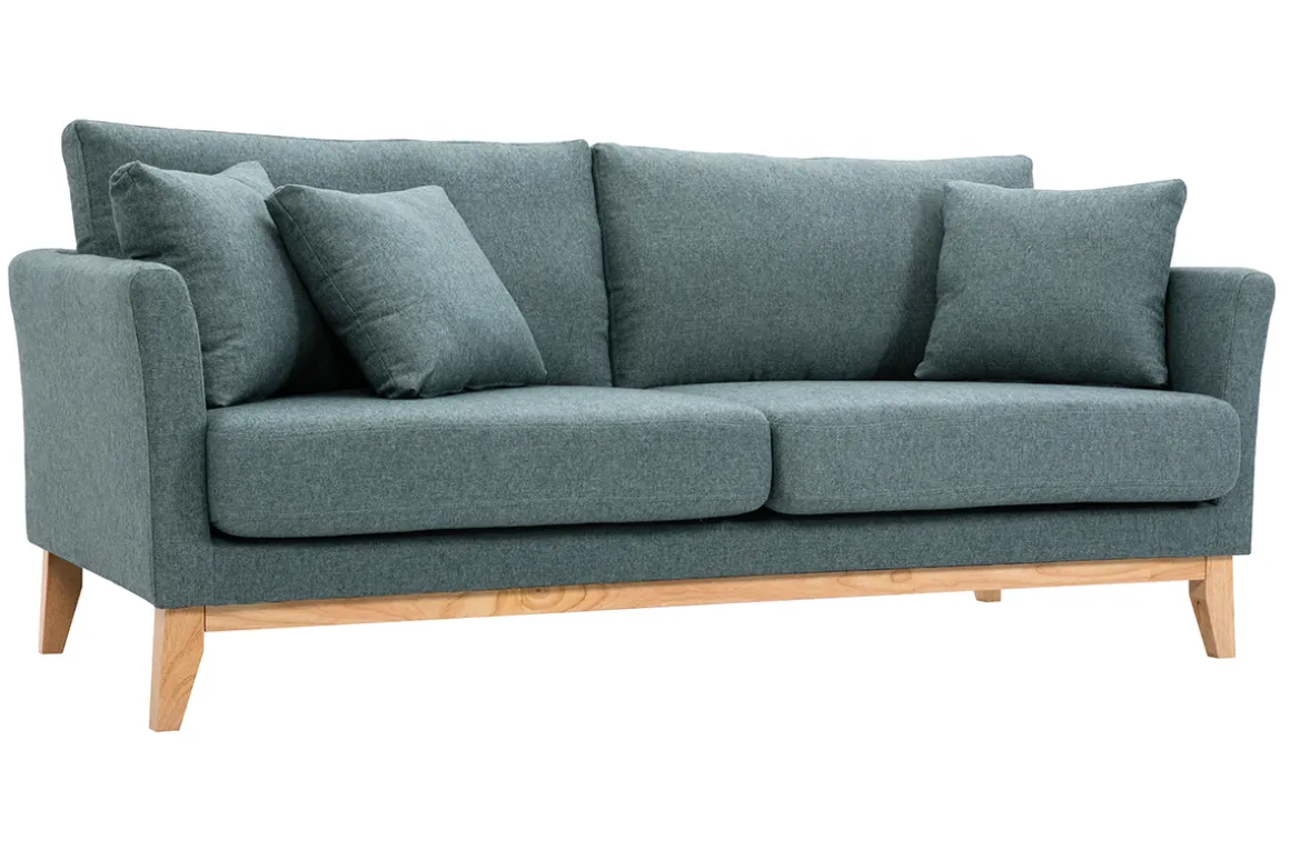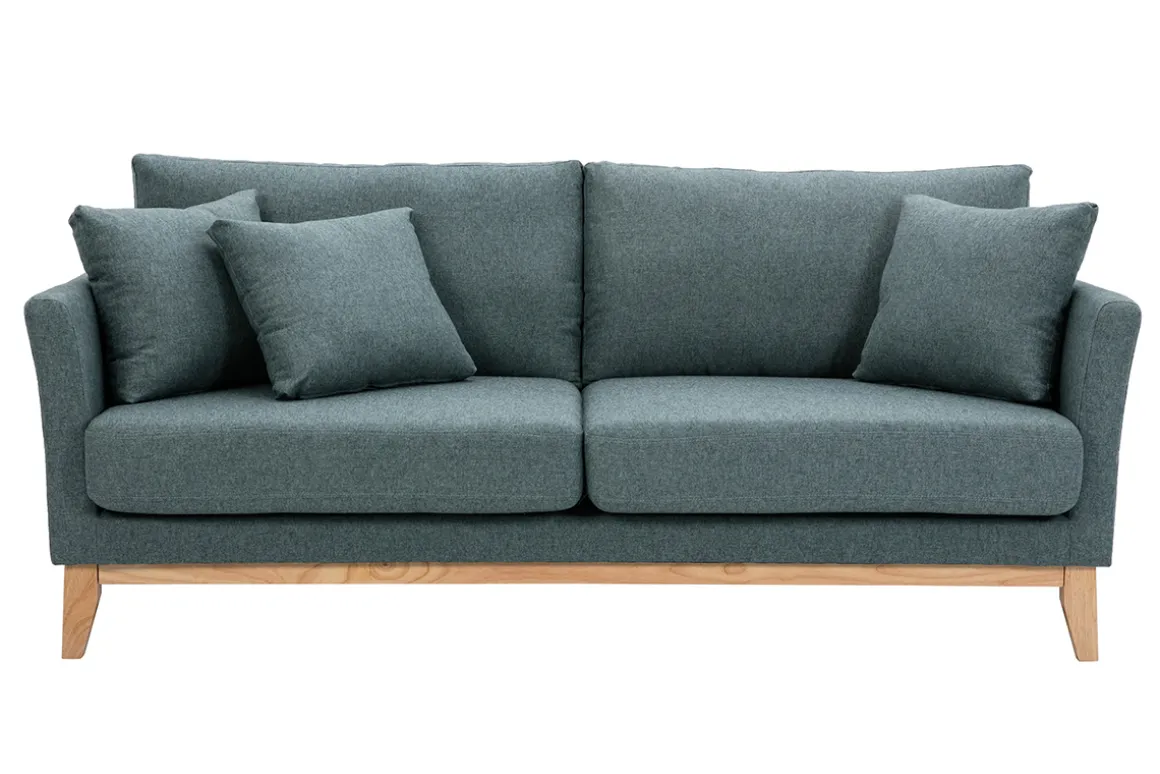 Canapé scandinave déhoussable 3 places en tissu vert de gris et bois clair OSLO livré prêt à assembler. Montage simple, seuls les pieds sont à fixer.