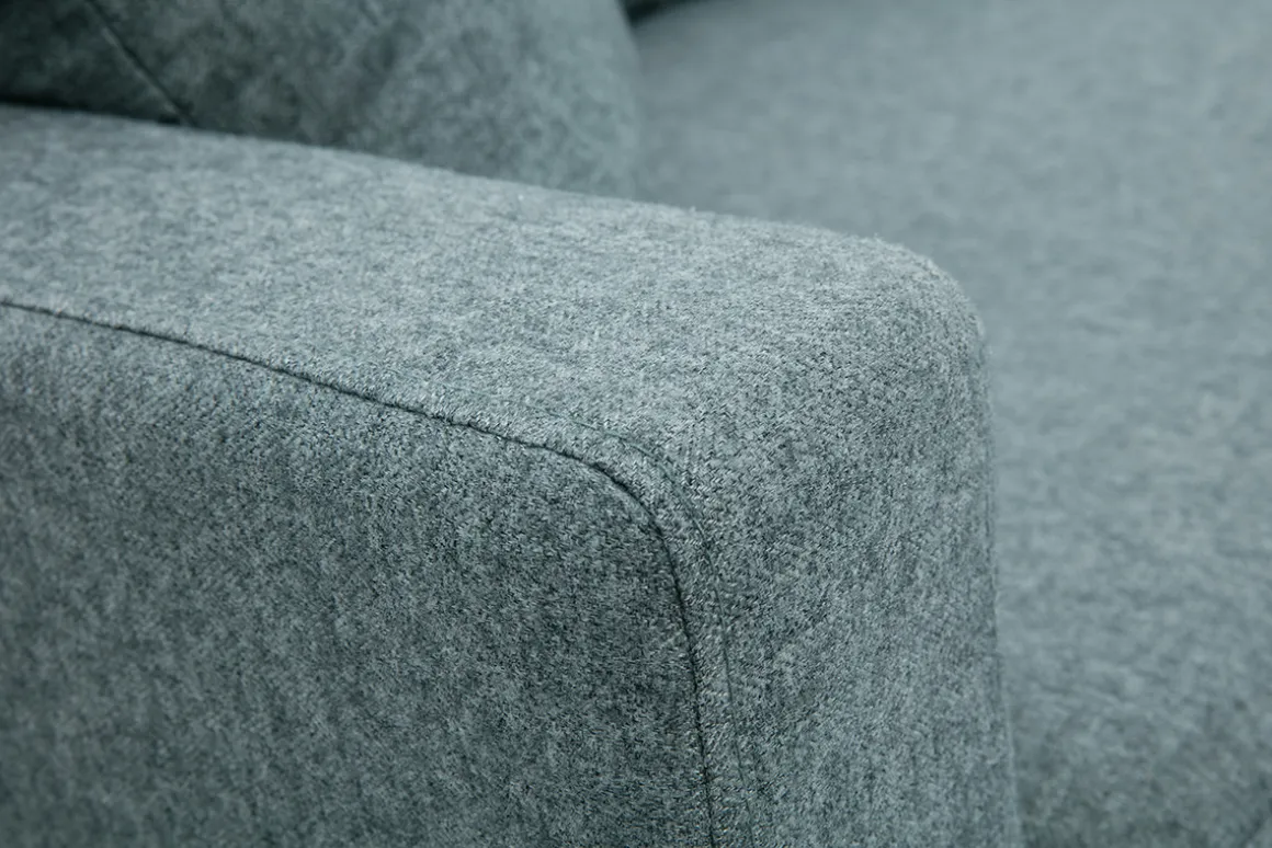 Avec son assise rembourrée (épaisseur 16 cm) et son revêtement souple et doux au toucher, cette méridienne en tissu effet velours texturé vert de gris et bois massif est idéale pour créer un espace dédié à la détente. Ce modèle de méridienne design combine des ressorts et trois épaisseurs de mousse pour toujours plus de confort (densités 28 kg/m3, 18 kg/m3 et 22 kg/m3). Grâce à leur garnissage en fibres polyester, les deux grands coussins de dossier – assortis au coussin d’appoint (L35 x L35 cm) – proposent un accueil des plus moelleux.