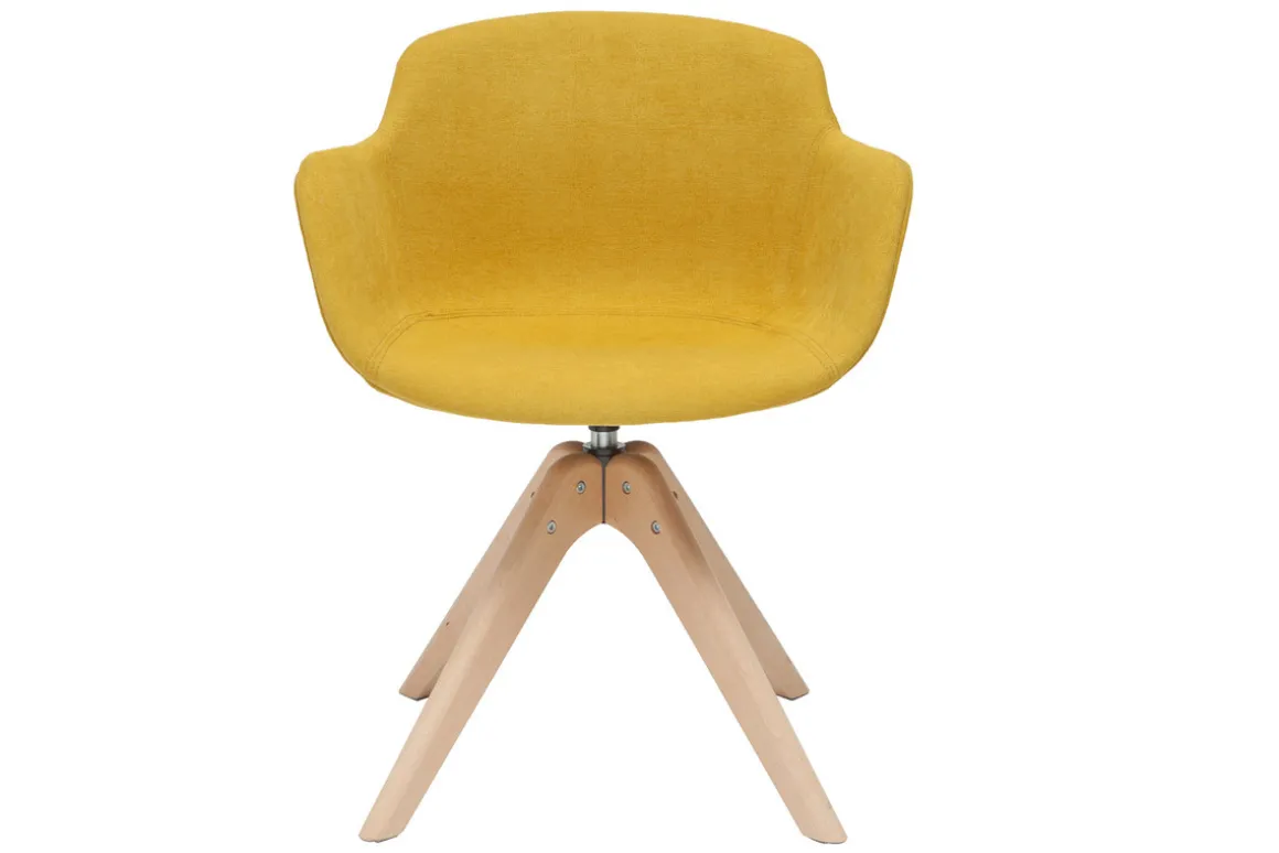 C’est la douceur des lignes de la chaise AARON qui interpelle en premier. Une assise tout en courbes, un piètement en arrondis… Cette chaise jaune moutarde a été travaillée tout en finesse. Le revêtement de cette chaise en tissu effet velours ajoute cette petite touche chic et cosy qu’on aime tant voir dans nos intérieurs. Quatre pieds en bois massif complètent le tout : le hêtre a été choisi pour sa teinte claire et chaleureuse qui met en valeur l’ensemble.