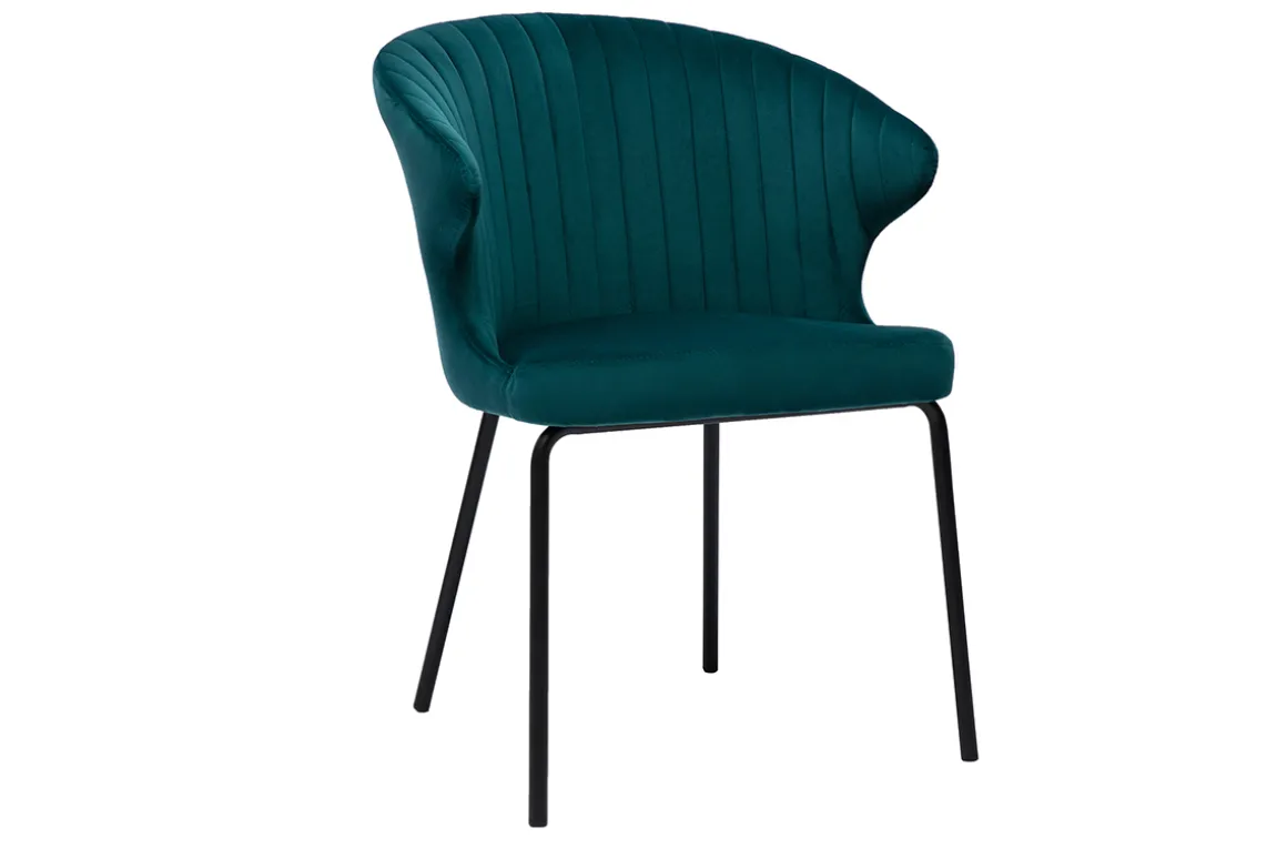 Chaise design en tissu velours bleu canard et métal noir livrée prête à monter.