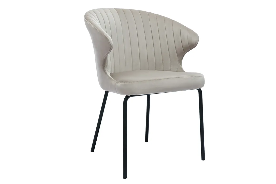 Cette chaise fauteuil velours taupe et métal noir intégrera aussi bien un salon comme siège d’appoint qu’une salle à manger en fauteuil de table. Le siège est intégralement garni de mousse pour un effet rembourré qui garantit un bon confort d’assise.