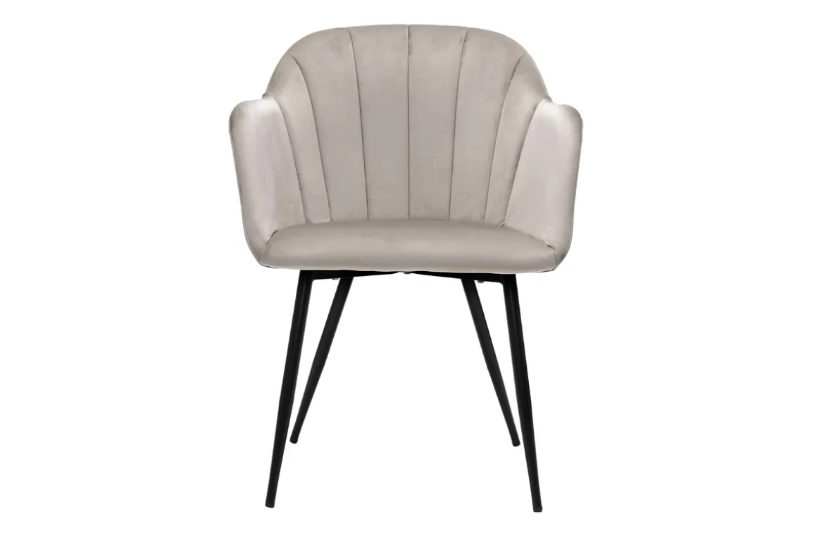 Élégante et raffinée, elle marie avec aisance son assise en velours taupe à des pieds fuselés en métal noir. Ce piètement aérien vient parfaire son look et signe son style ultra contemporain.