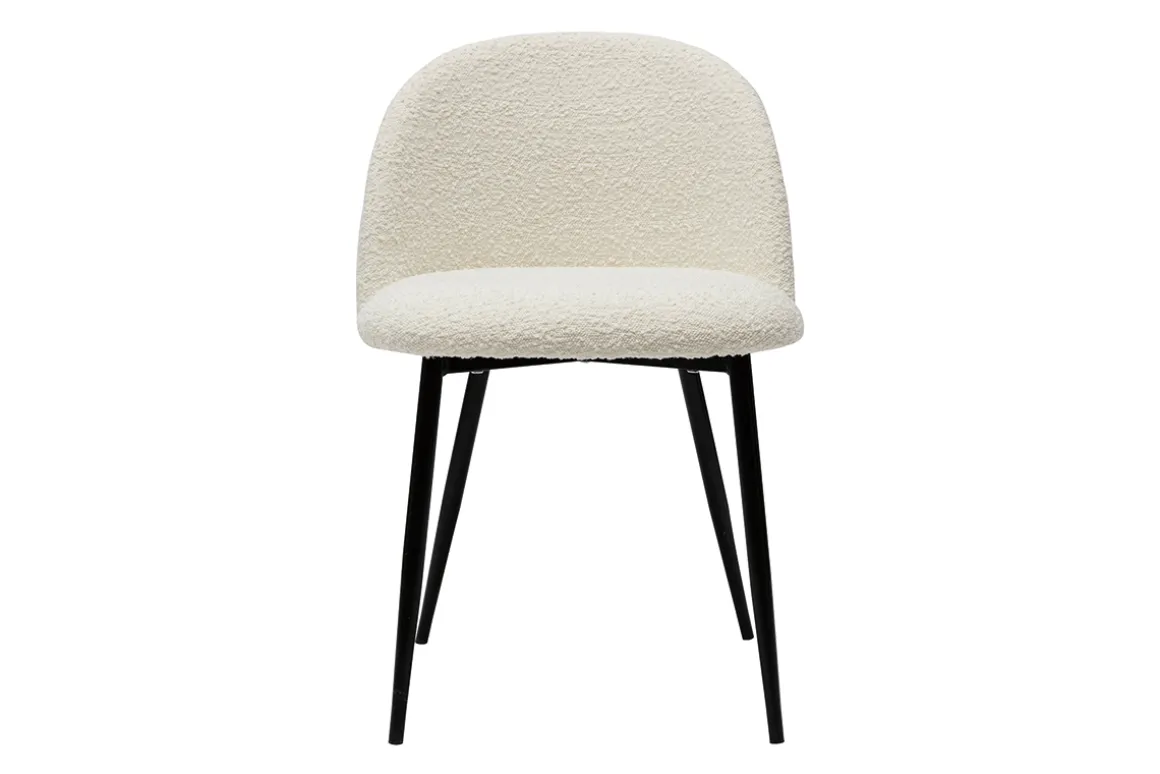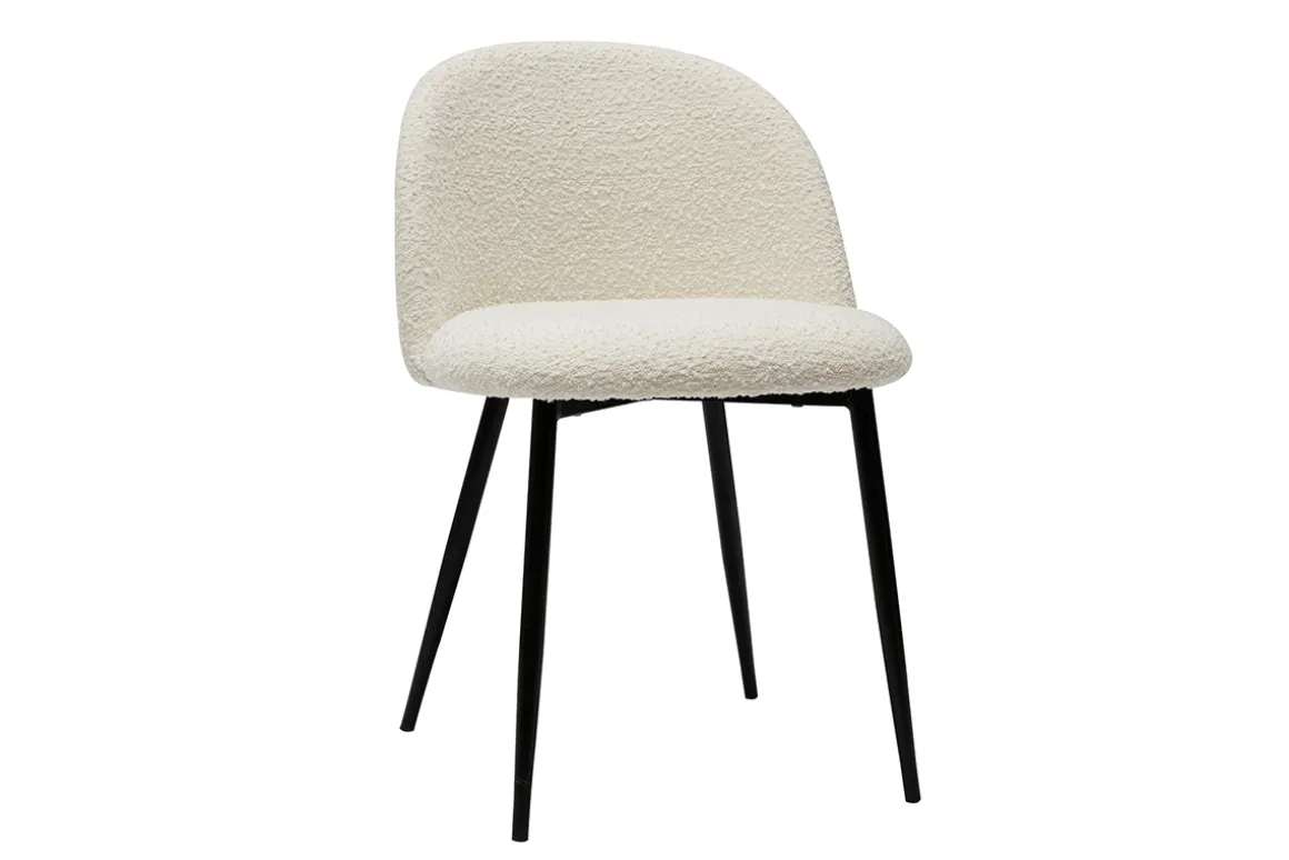 Tissu effet laine bouclée écru, pieds en métal noir, lignes arrondies : les chaises CELESTE sont des assises au look aussi cosy que trendy !