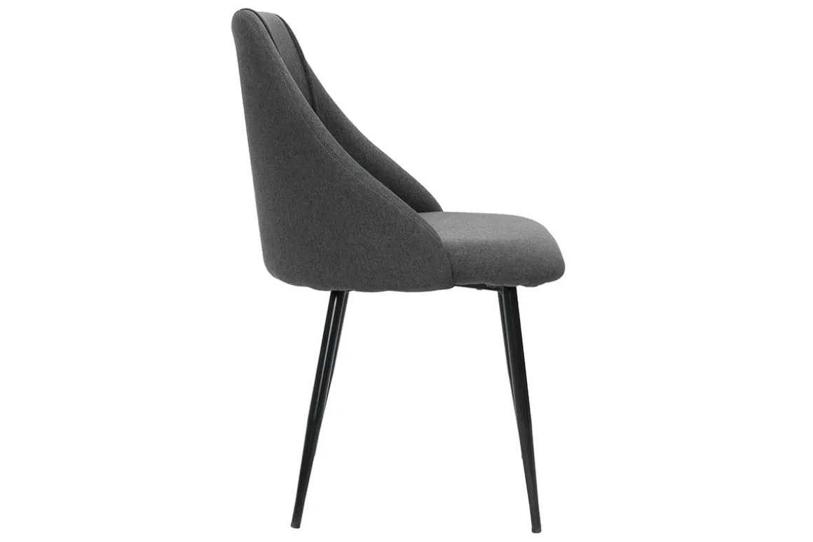 Chaises en tissu gris foncé et métal noir HIGGINS vendues par lot de 2. Livrées prêtes à assembler. Montage simple, seuls les pieds sont à fixer.