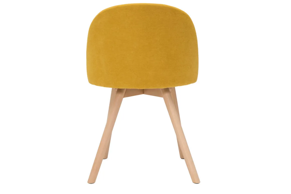 Tissu effet velours jaune mourtarde, pieds en hêtre massif, lignes arrondies : les chaises CELESTE reflètent tout ce qui fait le charme du style scandinave.
