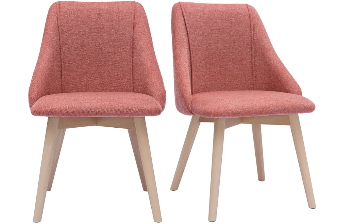 Chaises scandinaves en tissu effet velours texturé terracotta et bois clair HIGGINS vendues par lot de 2. Livrées prêtes à assembler. Montage simple, seuls les pieds sont à fixer.