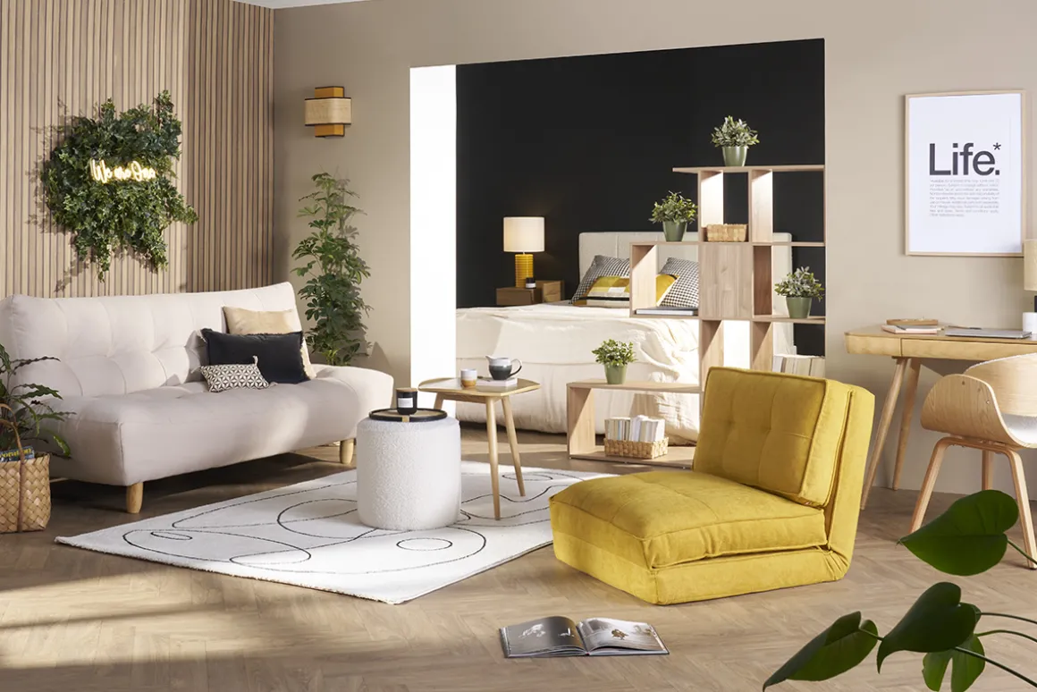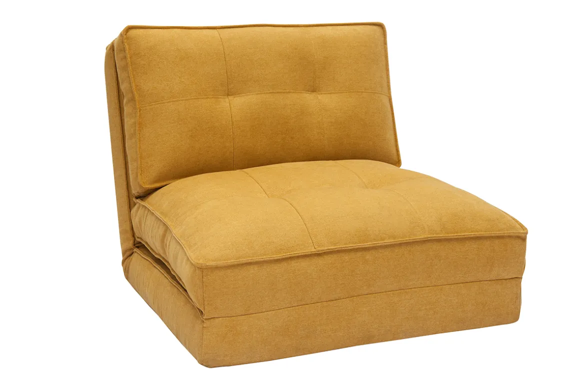 Ultra pratique, cette chauffeuse convertible 1 place ne délaisse pas pour autant son sens du style. Elle revêt un doux tissu effet velours texturé jaune moutarde et une belle finition capitonnée. Avec son look discret, SALLY est un fauteuil modulable qui se fondra autant dans un intérieur scandinave que contemporain. Pour l’accessoiriser, misez sur un joli coussin brodé et un plaid au toucher douillet !
