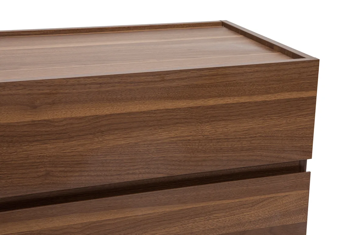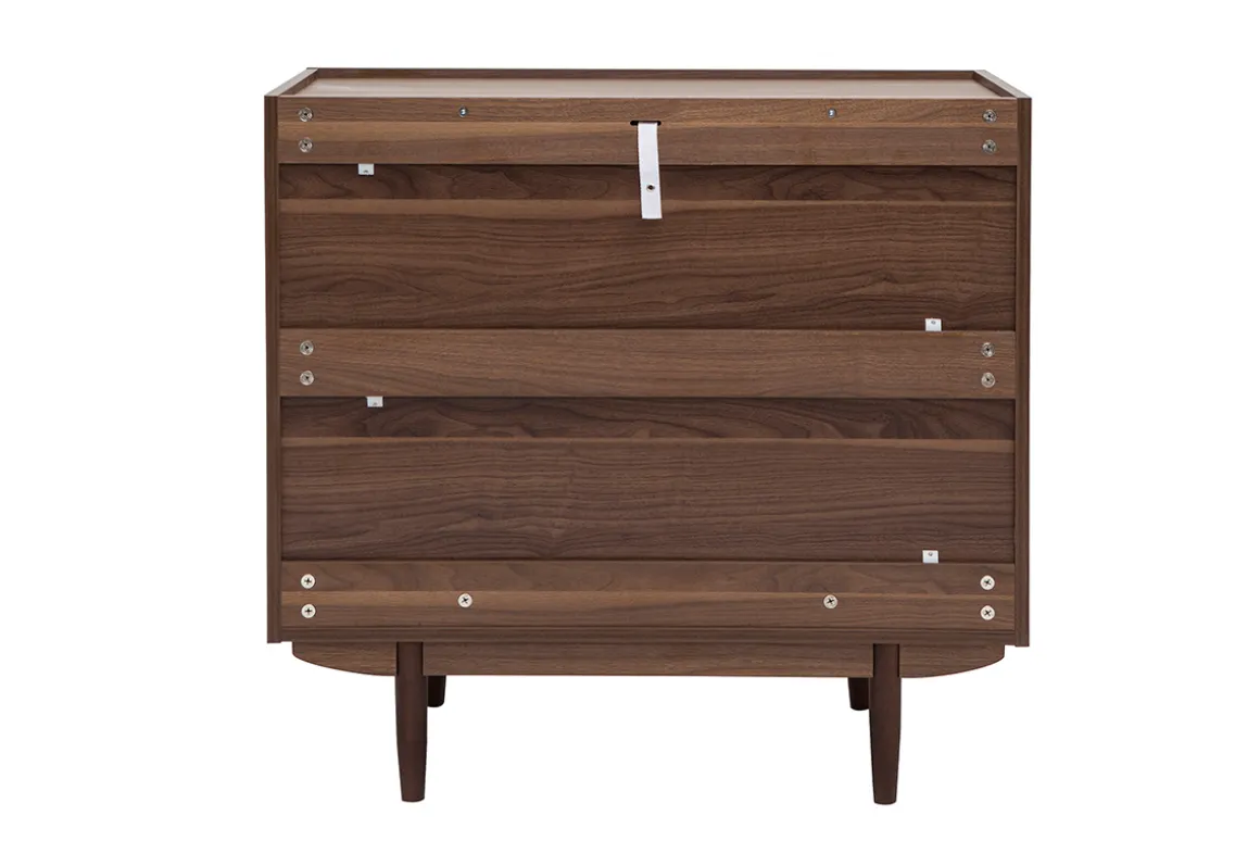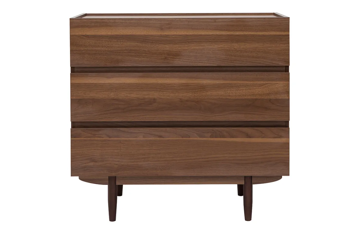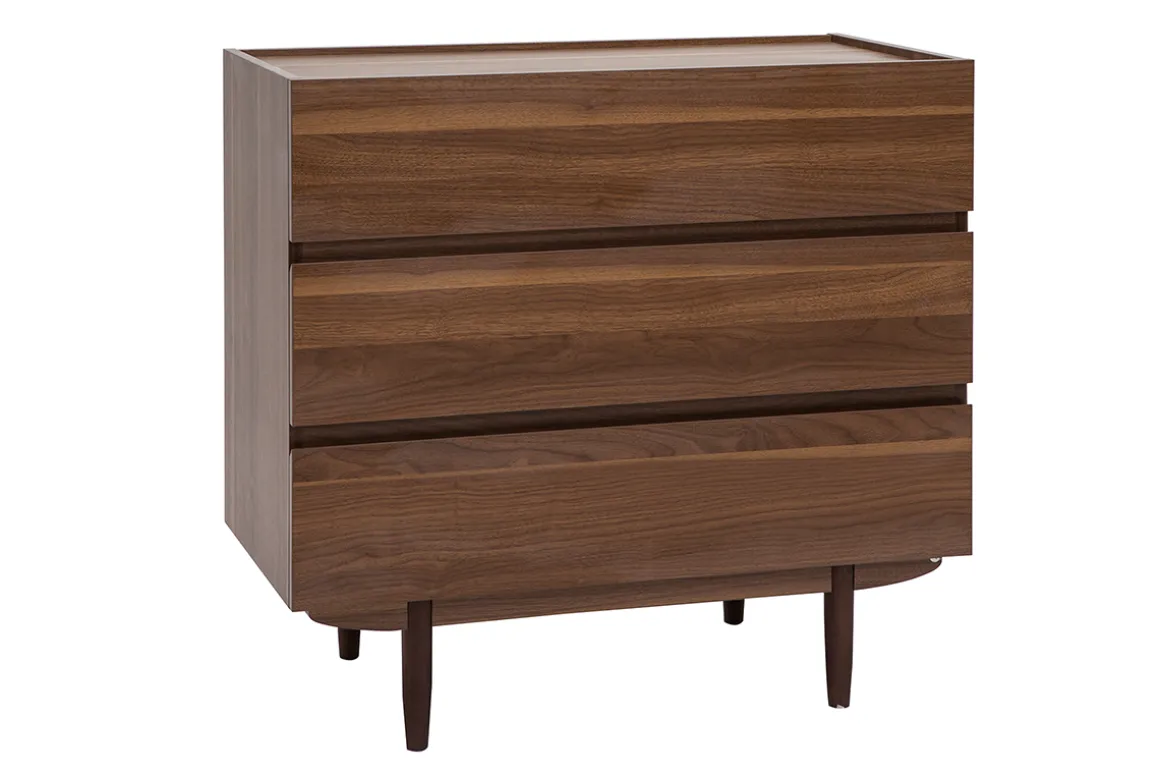 Commode finition bois foncé noyer 3 tiroirs L80 cm SANAA livrée prête à assembler.