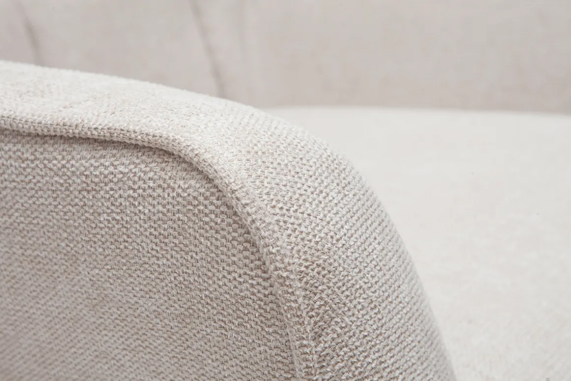 Le fauteuil AVERY semble vous inviter à la détente. C’est le dossier capitonné et le rembourrage de l’assise qui donnent cet effet unique. Ils ont été associés à une forme évasée et des dimensions généreuses pour un maximum de confort. Ce fauteuil réunit également des grands accoudoirs et un dossier haut, le parfait combo pour tous ceux qui aiment se lover dans leur fauteuil de salon. Le piètement en hévéa et le revêtement apportent une touche chaleureuse à l’ensemble. On aime particulièrement le tissu de ce modèle AVERY : son aspect effet velours texturé et son coloris naturel en font un siège unique.