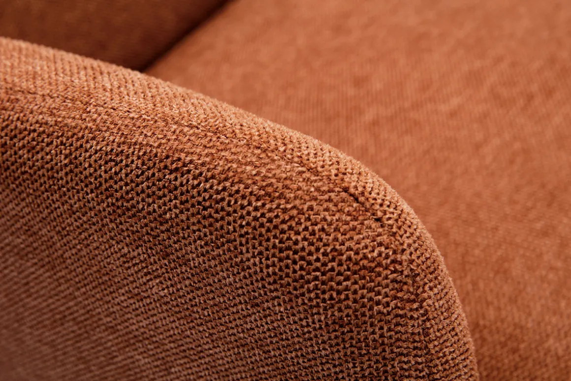 Avec ses lignes arrondies, son design épuré et sa jolie combinaison de matières, ce fauteuil possède tout ce qui fait le charme des meubles scandinaves. Le piètement en hévéa massif et le tissu effet velours texturé terre brûlée de l’assise en font une pièce indémodable et facile à intégrer dans différents styles de séjour.