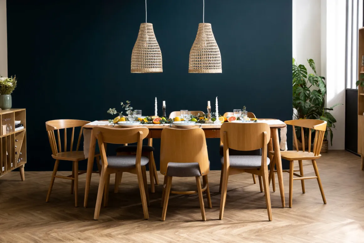 Pour un style 100% scandicraft dans le coin repas, accordez la suspension en rotin PAMPA avec des meubles de rangement en bois clair, des chaises aux détails cannage, de la vaisselle et des accessoires déco en tissu clair et lumineux… Ce luminaire naturel fera ainsi de la salle à manger un espace authentique et tendance !