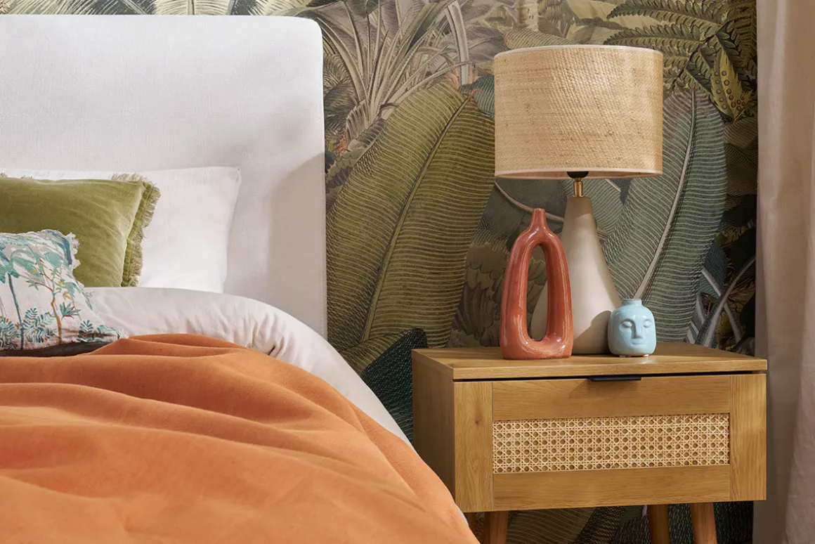 Placée à la tête d’une agréable literie, elle signera avec charme un espace nuit aussi fonctionnel que stylé ! Afin de conserver le plateau libre – prêt à accueillir votre lecture du soir ou votre réveil – nous vous conseillons de disposer de part et d’autre de votre tête de lit des lumières d’appoint de type appliques murales. Gain de place assuré !