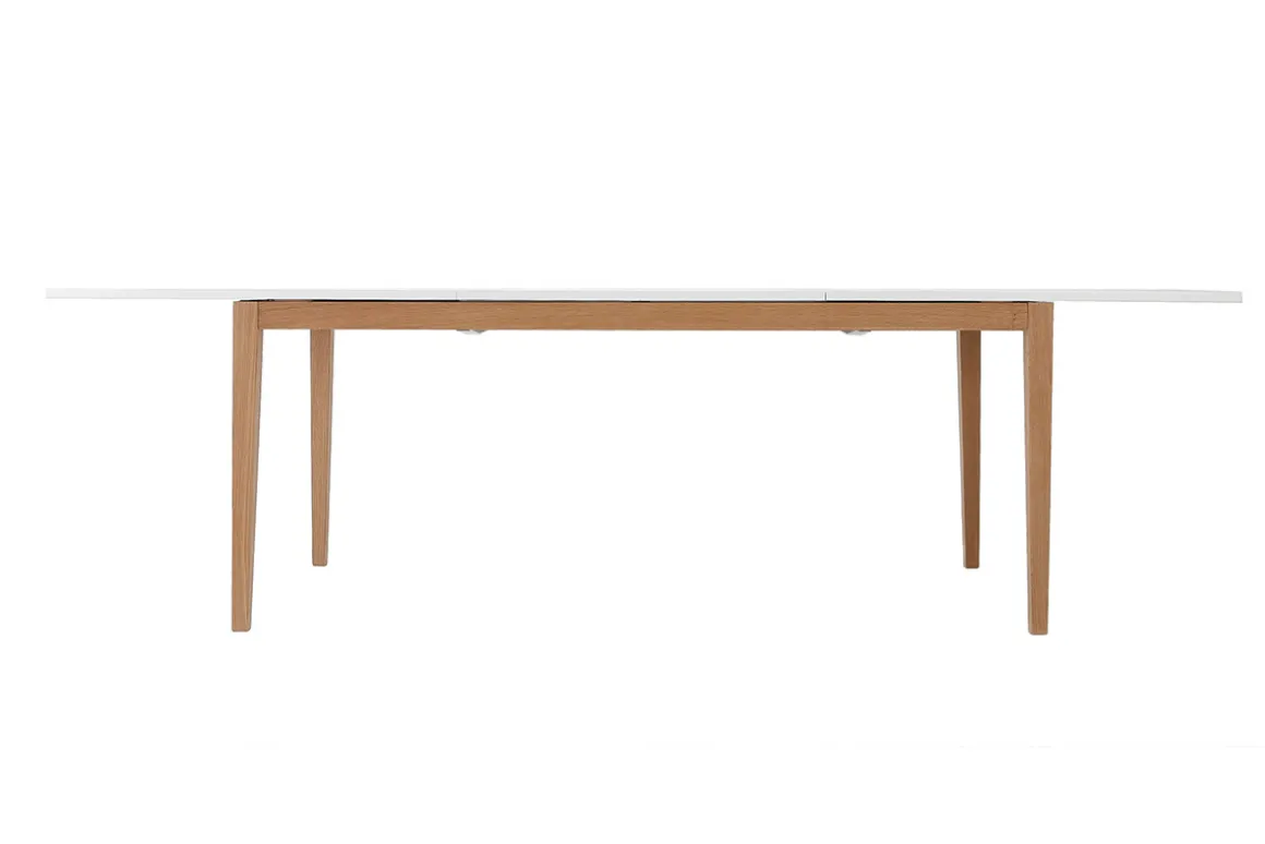 La table à manger scandinave extensible blanche pieds bois 180-260 cm DELAH, l’idéal pour les repas en nombre !