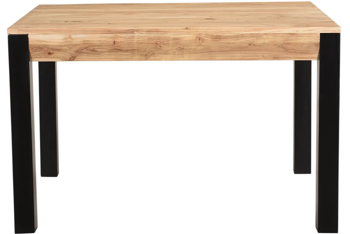 Avec son plateau en bois massif accompagné d’un piètement en métal noir, le modèle TRAP rappelle tout ce qui fait la beauté du mobilier industriel. Fabriquée selon des techniques artisanales, TRAP offre un rendu brut qui fait tout son charme. Plébiscitée pour la confection de mobilier d’intérieur, l’acacia est une essence naturellement dure et dense particulièrement esthétique. Ce bois imputrescible, se distingue par ses veinures allongées, mais également ses variations de couleurs. Avec le temps, l’exposition à la lumière et sources de chaleur, l’acacia est un bois clair dont le coloris jaune-vert à doré subit une coloration naturelle (brune, rougeoyante, reflets gris).