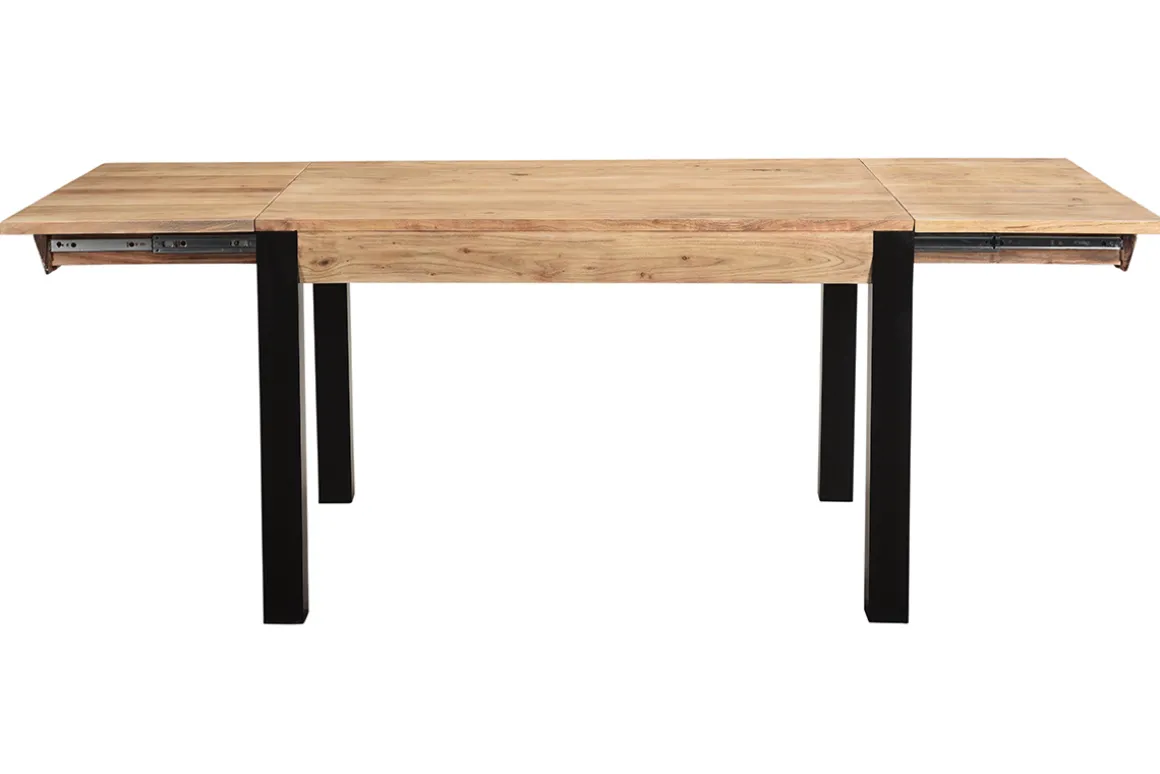 Table à manger extensible rallonges intégrées en bois massif et métal noir L120-210 cm TRAP livrée prête à monter. Montage simple, seul le piètement est à fixer.