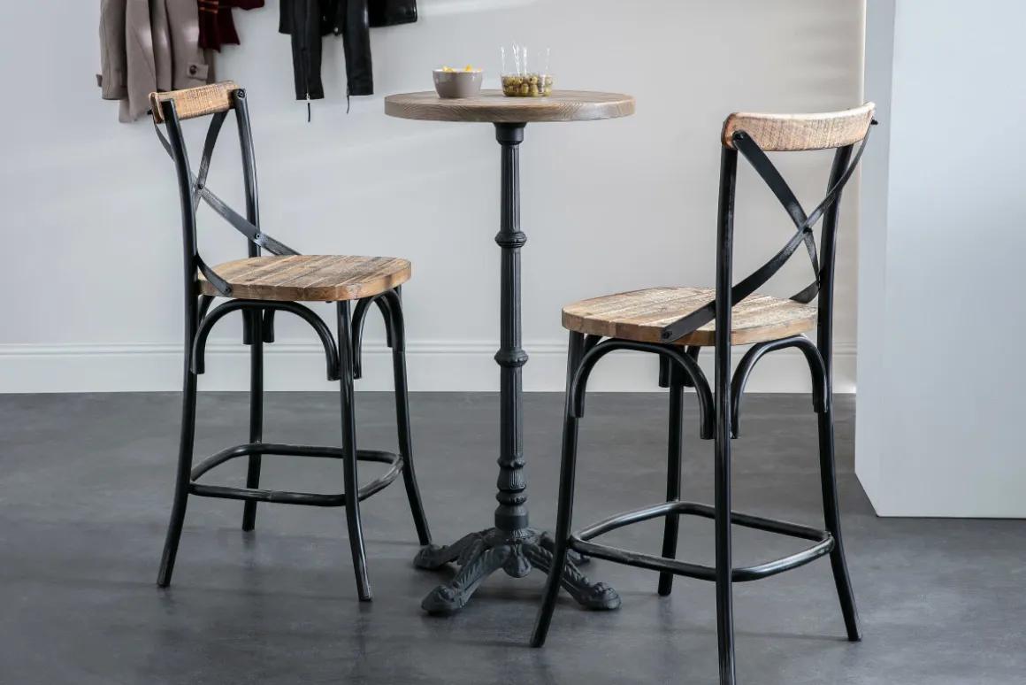 Autour d’un comptoir de cuisine américaine ou d’une table haute, ce tabouret de bar donnera du caractère et de la personnalité à l’ensemble de votre espace repas. Le bois travaillé façon vintage nous plonge dans une atmosphère autenthique et empreinte de charme tandis que le piètement en métal noir vieilli reprend les codes irrésistibles du style factory. On adopte tout de suite !