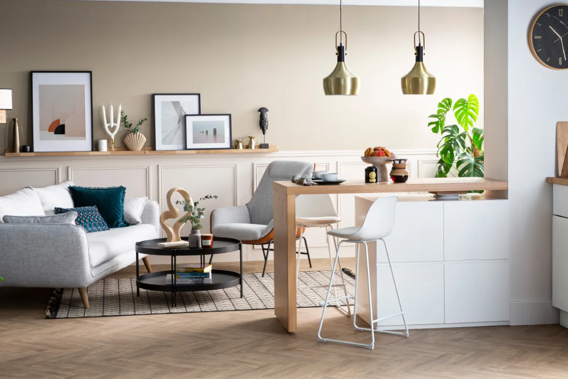 Pour vous créer un espace convivial et chaleureux, n’hésitez pas à mixer les tabourets de bar différents !