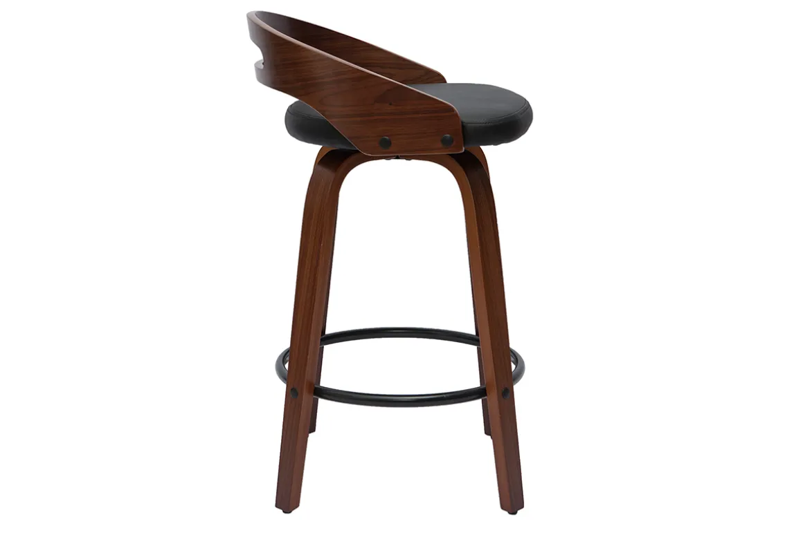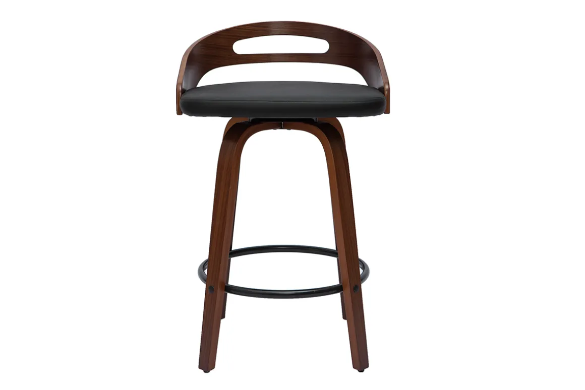 Design et chaleureux, les tabourets MANO cultivent leur propre style. Ils mêlent la chaleur du bois courbé placage noyer à la modernité d’une assise en polyuréthane noir et d’un repose-pied en métal. L’ensemble forme un rendu dans l’air du temps qui saura se fondre harmonieusement avec le reste de votre intérieur. Si ce jeu de texture les rendent terriblement tendance, il en est de même pour leurs lignes arrondies !