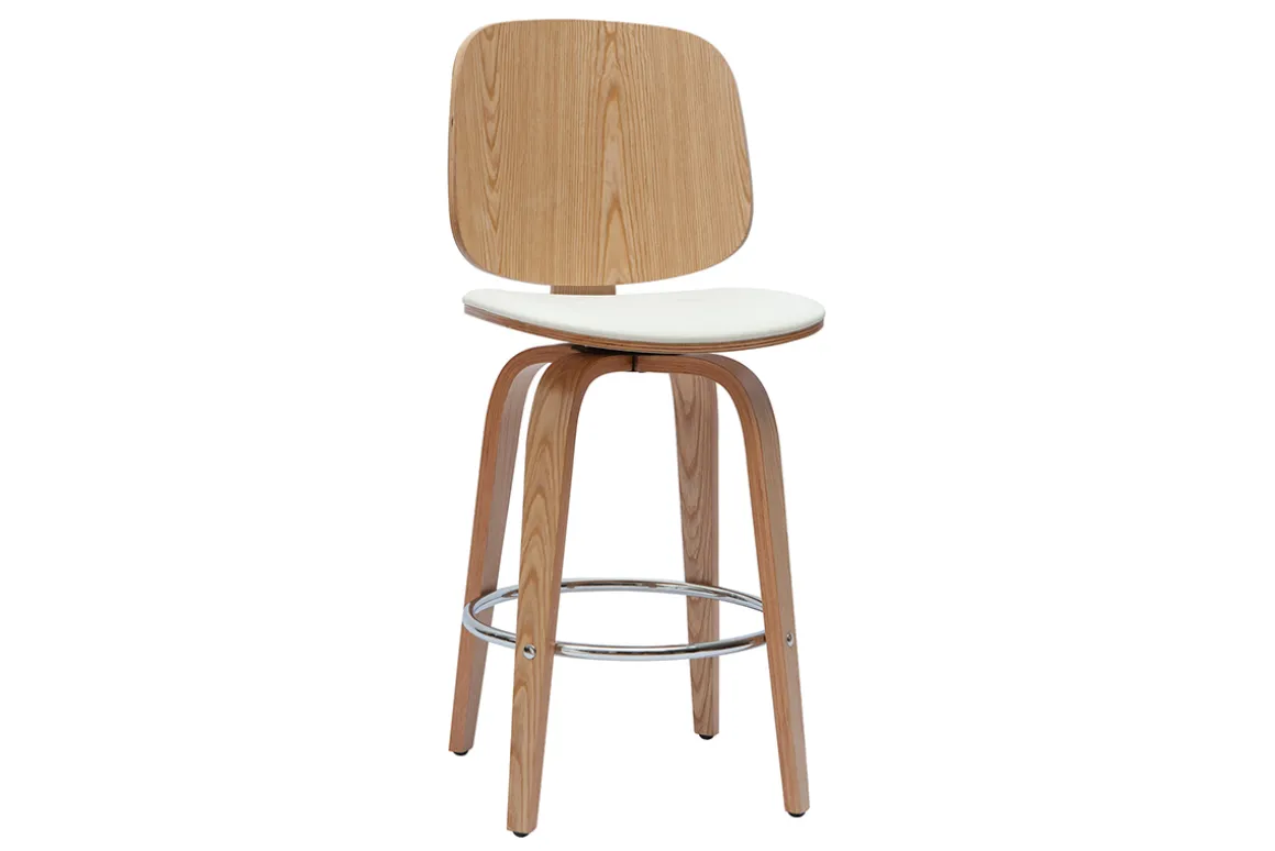 Ces chaises hautes pivotantes à 360° aux belles lignes arrondies, mixent harmonieusement matières et couleurs pour un look totalement dans l’air du temps. Elles marient à la perfection un dossier plaqué érable et des pieds en hêtre massif à une assise en polyuréthane blanc. Amis et famille seront conquis par ces tabourets aussi design que chaleureux.