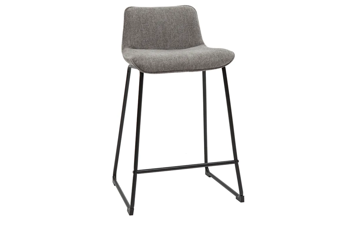 Tabourets de bar en tissu effet velours texturé gris et métal H65 BOOST vendus par lot de 2. Livrés prêts à assembler.
