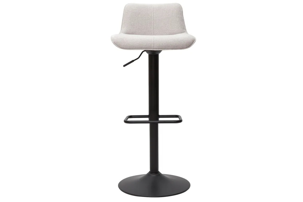 Tabourets de bar relevables en tissu velours texturé beige et métal noir vendus par lot de 2. Livrés prêts à monter.