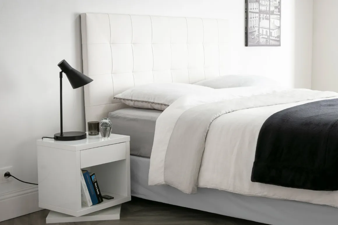 Revêtue de polyuréthane, elle très simple d’entretien et son installation se fait sans encombre : il suffit de glisser la tête de lit entre le lit et le mur.