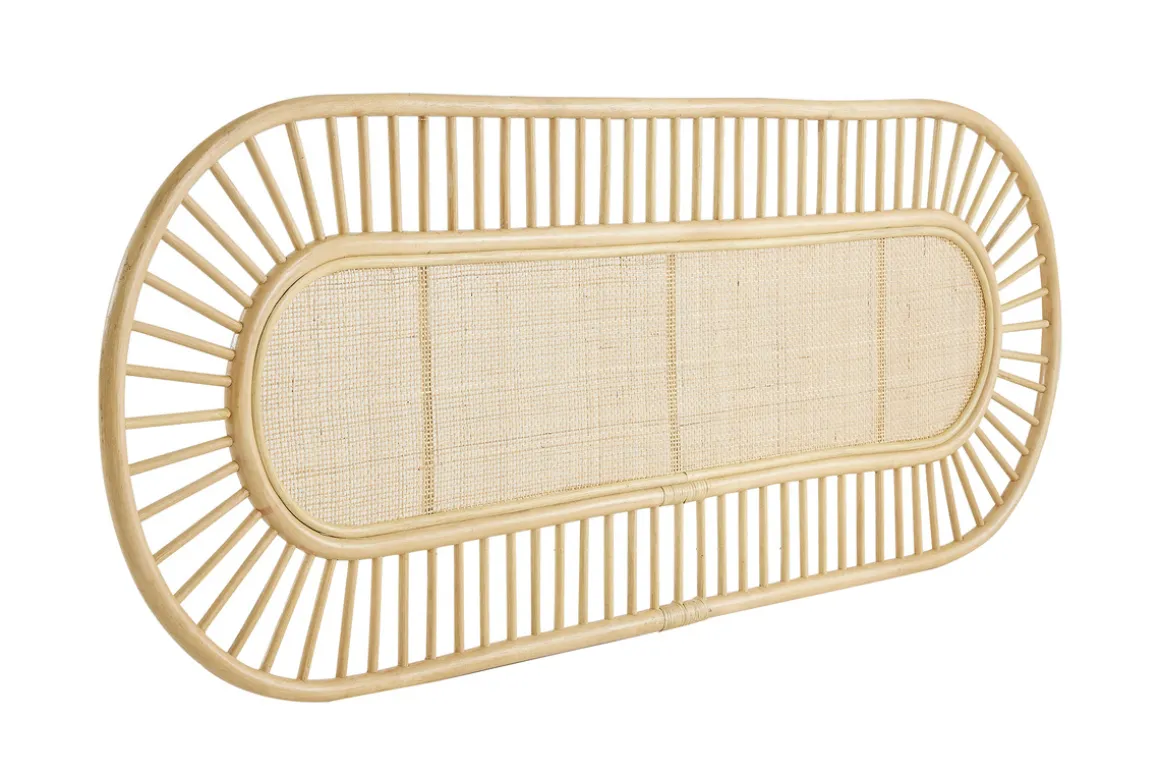 Avec un design à la fois simple et travaillé, cette tête de lit en rotin rayonne tout en rondeur ! Silhouette solaire, pleins et vides, cannage et tiges en rotin se relayent et forment une tête de lit originale qui apportera du cachet dans une chambre à coucher à l’esprit bohème ou ethnique chic. Pile dans la tendance scandicraft, cette tête de lit naturelle s’envisage également dans une ambiance déco scandinave.
