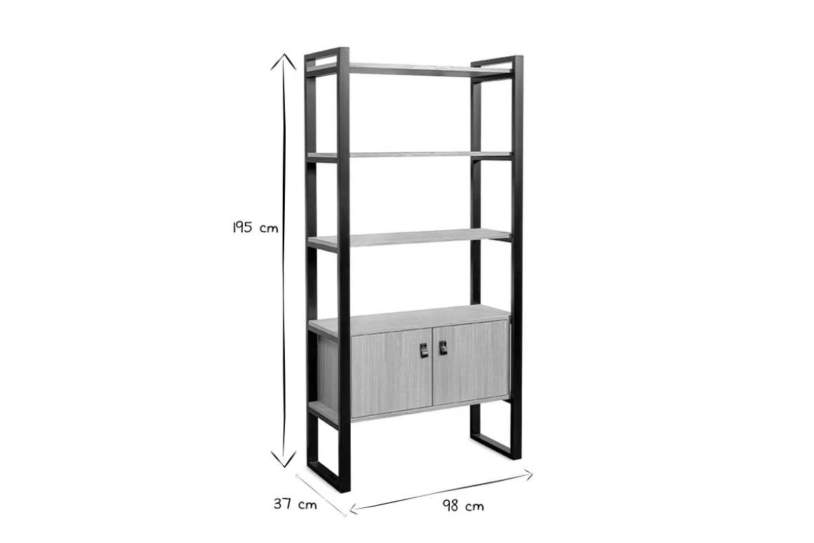 Bibliothèque en bois et métal à monter et fabriquée en Europe.