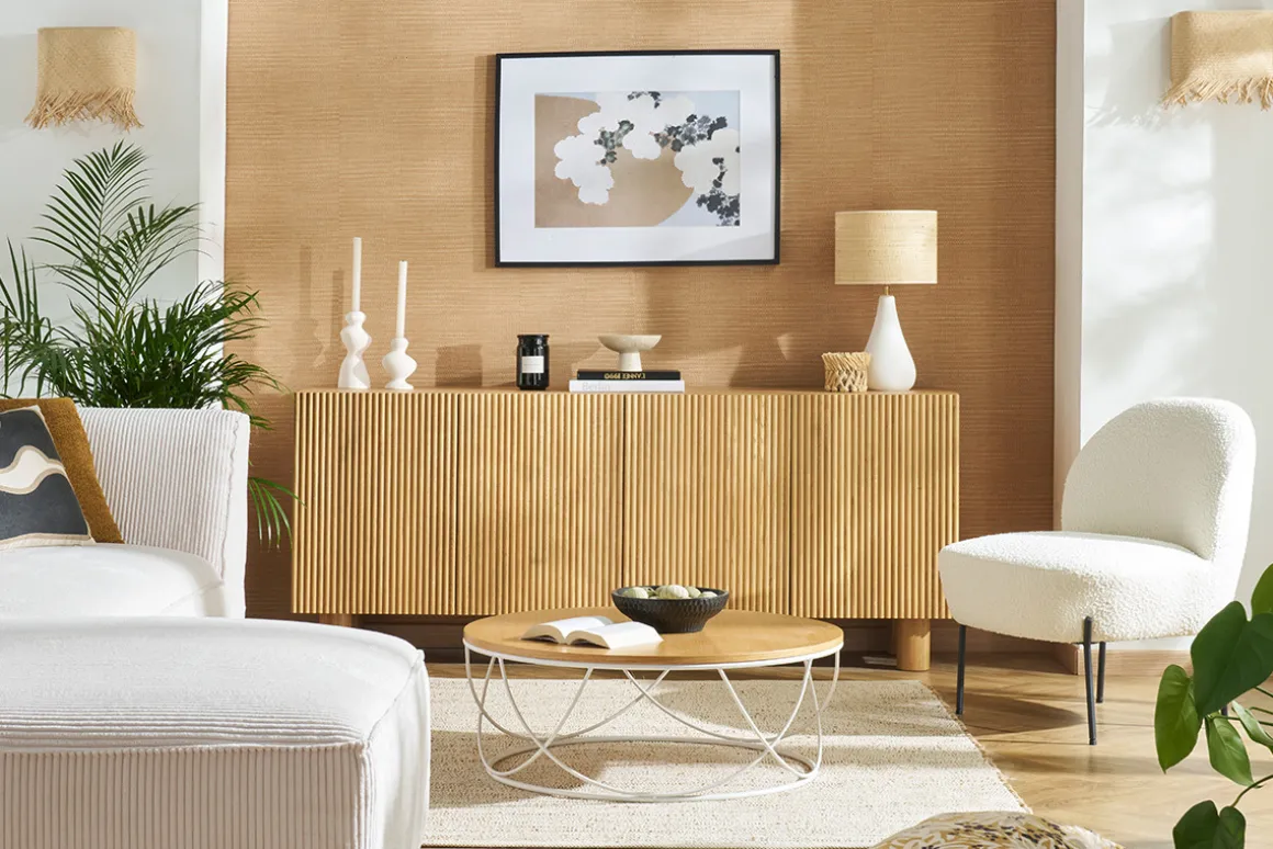 Accompagné d’une jolie lampe à poser, transformez votre intérieur avec ce magnifique buffet et profitez d’un meuble qui allie parfaitement charme et praticité.