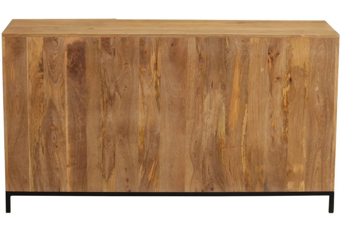 Ce buffet en bois massif à la beauté brute et au style minimaliste s’harmonise en douceur avec toutes nos envies déco. Buffet artisanal issu d’un superbe travail sur la matière, chaque pièce est réalisée en manguier vernis selon des techniques artisanales et ne ressemble ainsi à aucune autre. Avec son grain unique, cette essence de bois exotique dégage force et douceur. On aime particulièrement son toucher sensuel et sa robustesse. Ce buffet en bois massif et métal noir est une pièce de caractère.