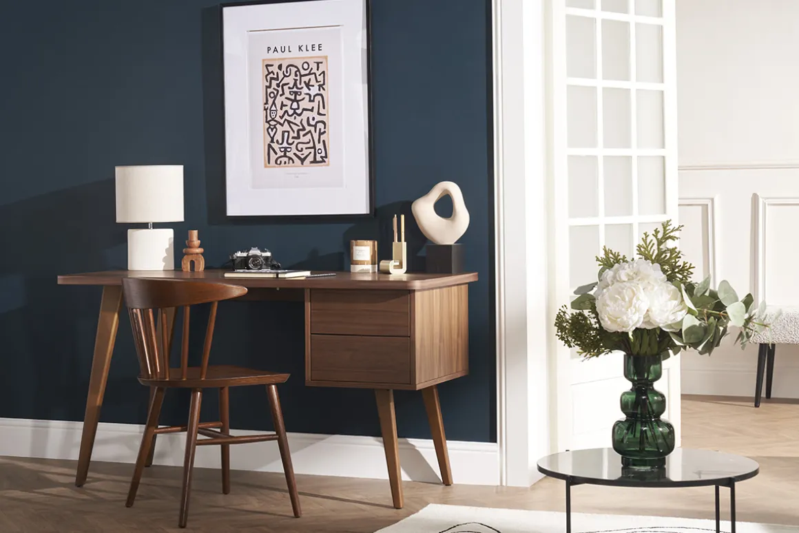 Pour apporter une touche de modernité tout en conservant l’esprit vintage, associez à ce bureau la chaise design de bureau BENT disponible en différents coloris.