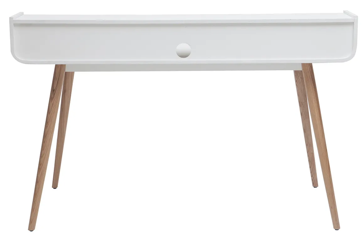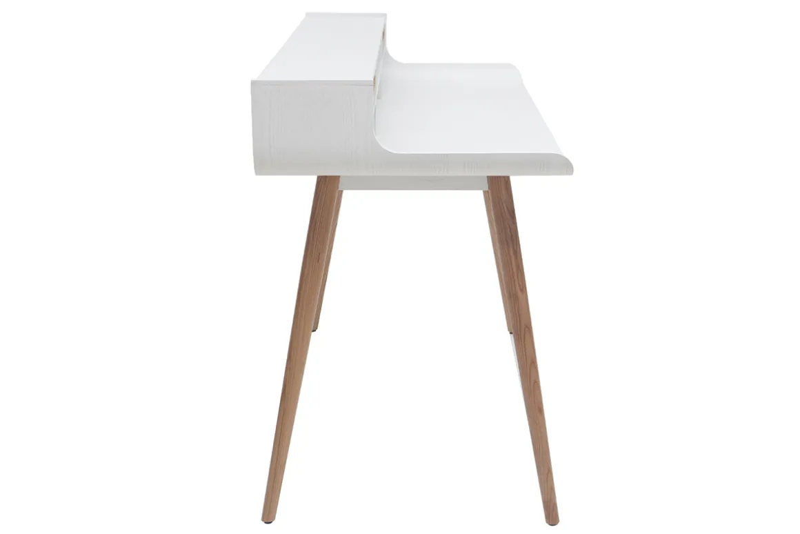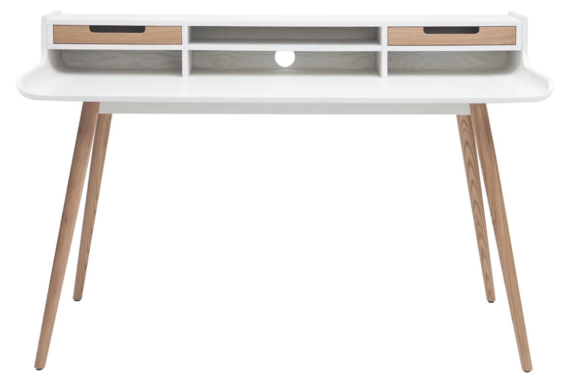Le bureau avec rangements OPUS se distingue également par son élégante association de bois coloris naturel et de bois peint en blanc ainsi que ses pieds compas en frêne massif. Sa ligne essentielle et intemporelle séduira à coup sûr les amoureux du design danois des années 50/60.