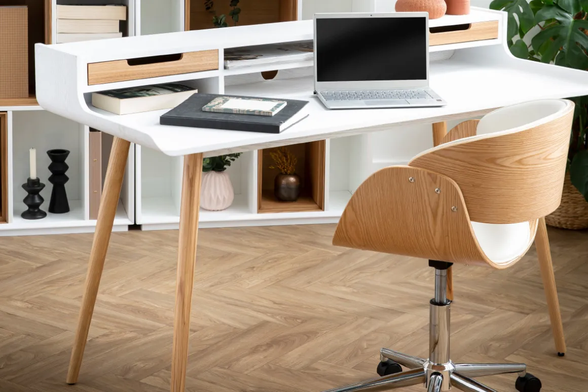 Bureau bois et blanc à monter soi-même.