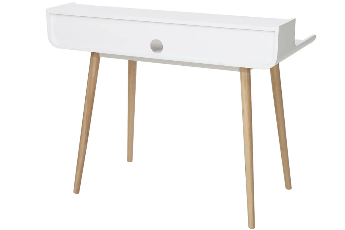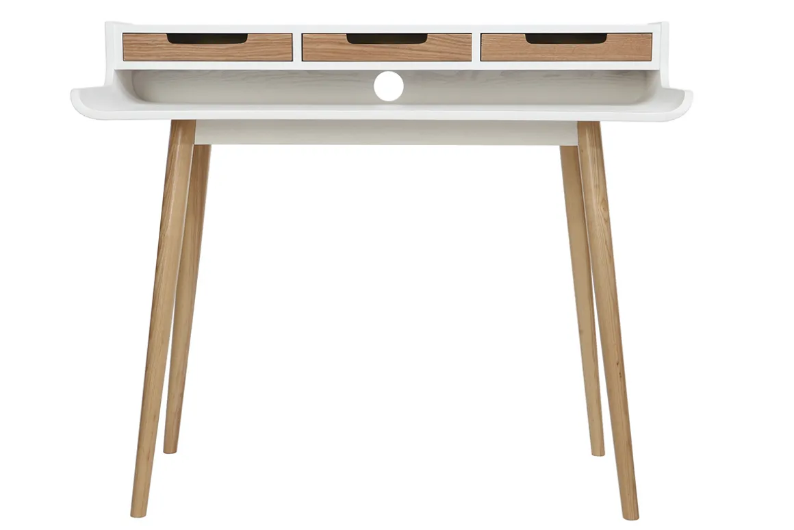 Inspiré du design danois des années 50/60, le bureau OPUS séduira tous les amoureux de mobilier scandinave avec son élégante finition frêne et ses pieds compas en bois massif très solides.