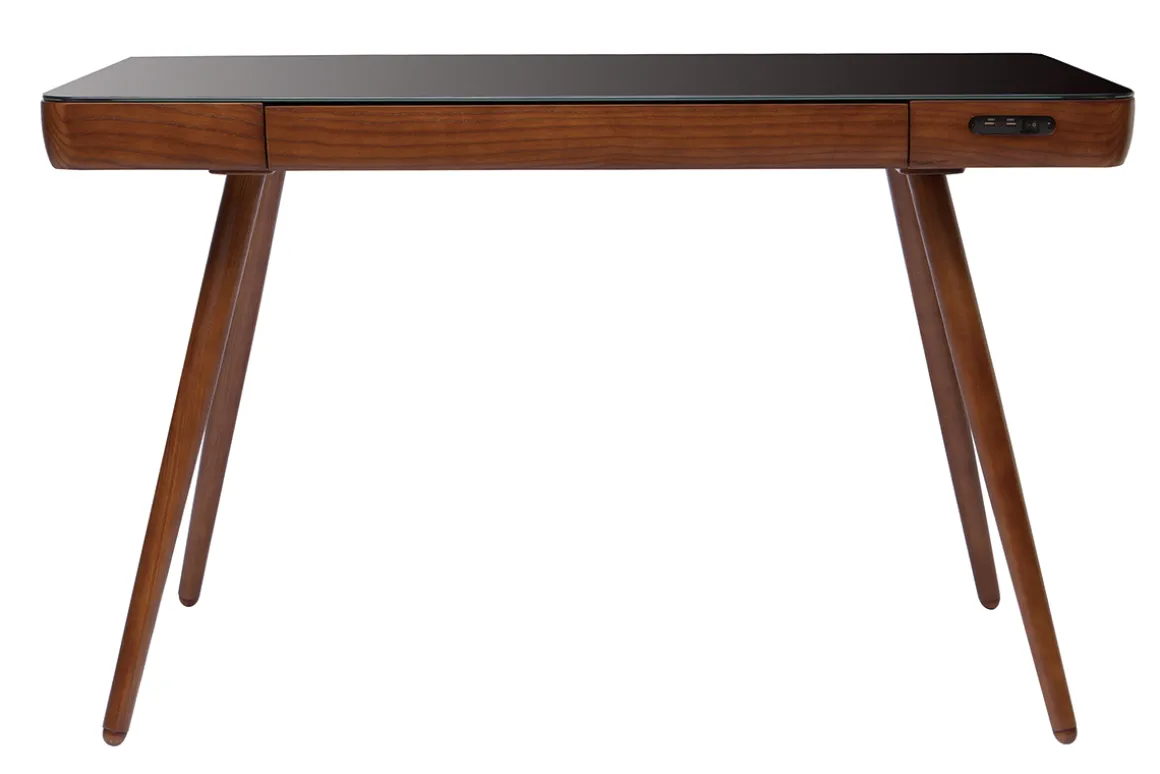Comme nous aimons le design autant que la facilité d’utilisation de nos meubles, le bureau connecté multimédia CLEVER ne déroge pas à la règle. Son plateau est en verre noir tandis que ses pieds et sa structure sont en frêne placage noyer. Un large tiroir vous permettra de ranger tous vos accessoires de travail.