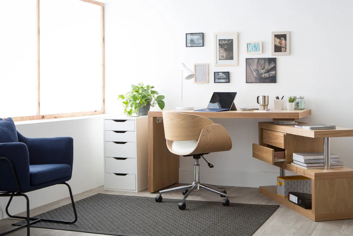 Aménagez un espace de travail 100% modulable et parfaitement organisé grâce au bureau design MAX finition frêne et son rangement 2 tiroirs intégré !