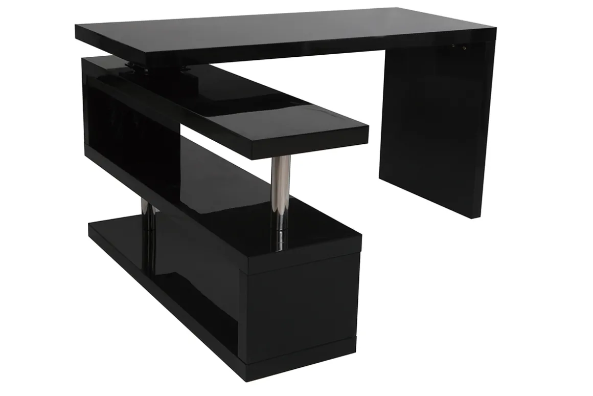 Le bureau MAX laqué noir c’est une praticité sans égale. Le plateau et les étagères peuvent en effet être positionnés dans le sens que vous souhaitez. Que vous vouliez un bureau en angle droit (orienté à droite ou à gauche), un bureau tout en longueur ou un espace de travail entre les deux, ce bureau design s’adapte à vos envies et vous permet de bénéficier d’un espace de travail sur mesure.