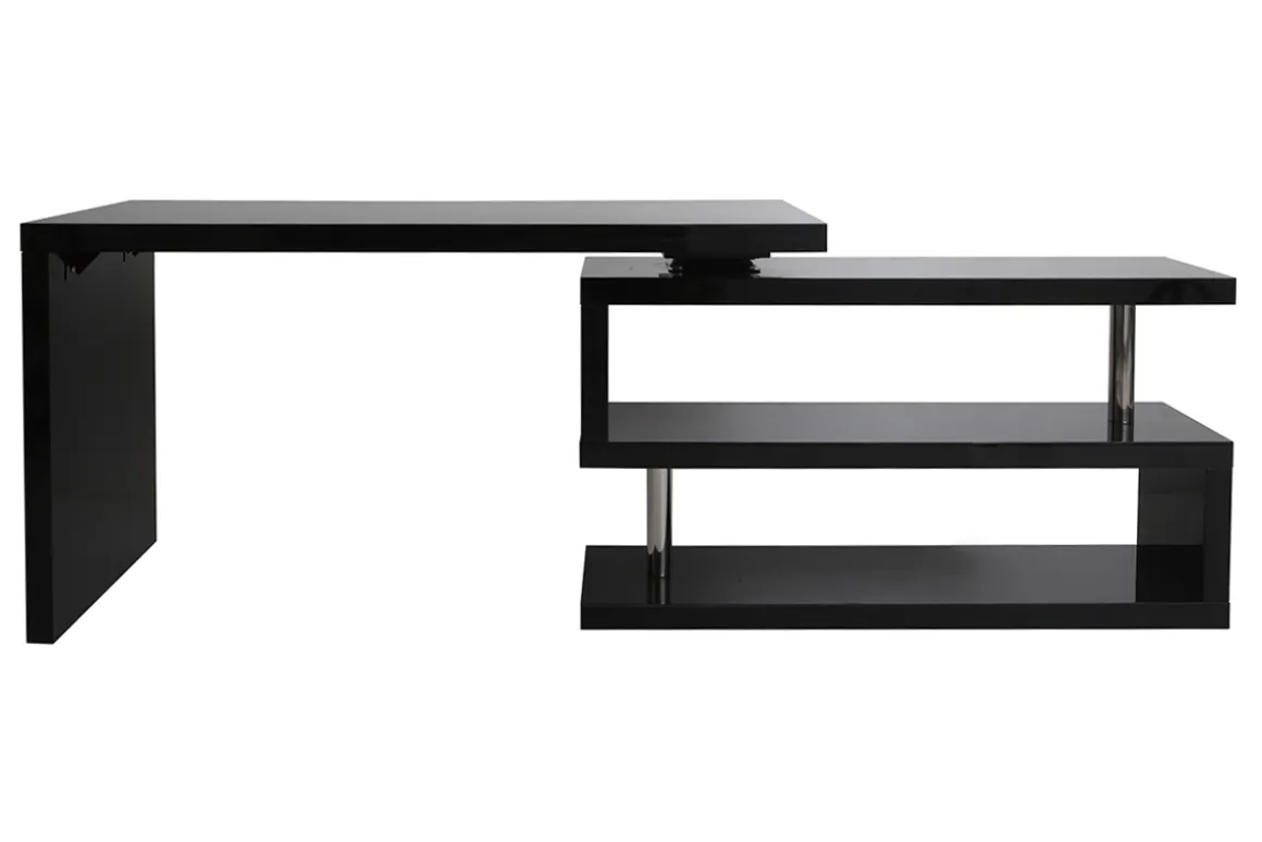 Ce bureau design à la finition laquée vous surprendra grâce à ses formes contemporaines associées à un système d’étagères rotatif pour un espace de travail 100% modulable.