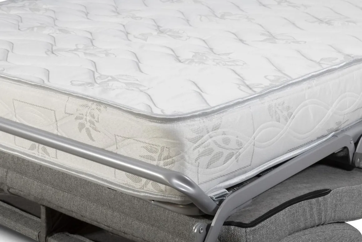 Avec son matelas épais de 18 cm, ce canapé-lit en tissu gris clair offre tout le confort d’un vrai lit 2 places (L140 x L190 x E18 cm). Conçu à partir de mousse polyuréthane (densité 28 kg/m3) et tissu jacquard (100% polyester), le matelas assure un accueil ferme et frais pour une bonne qualité de sommeil.