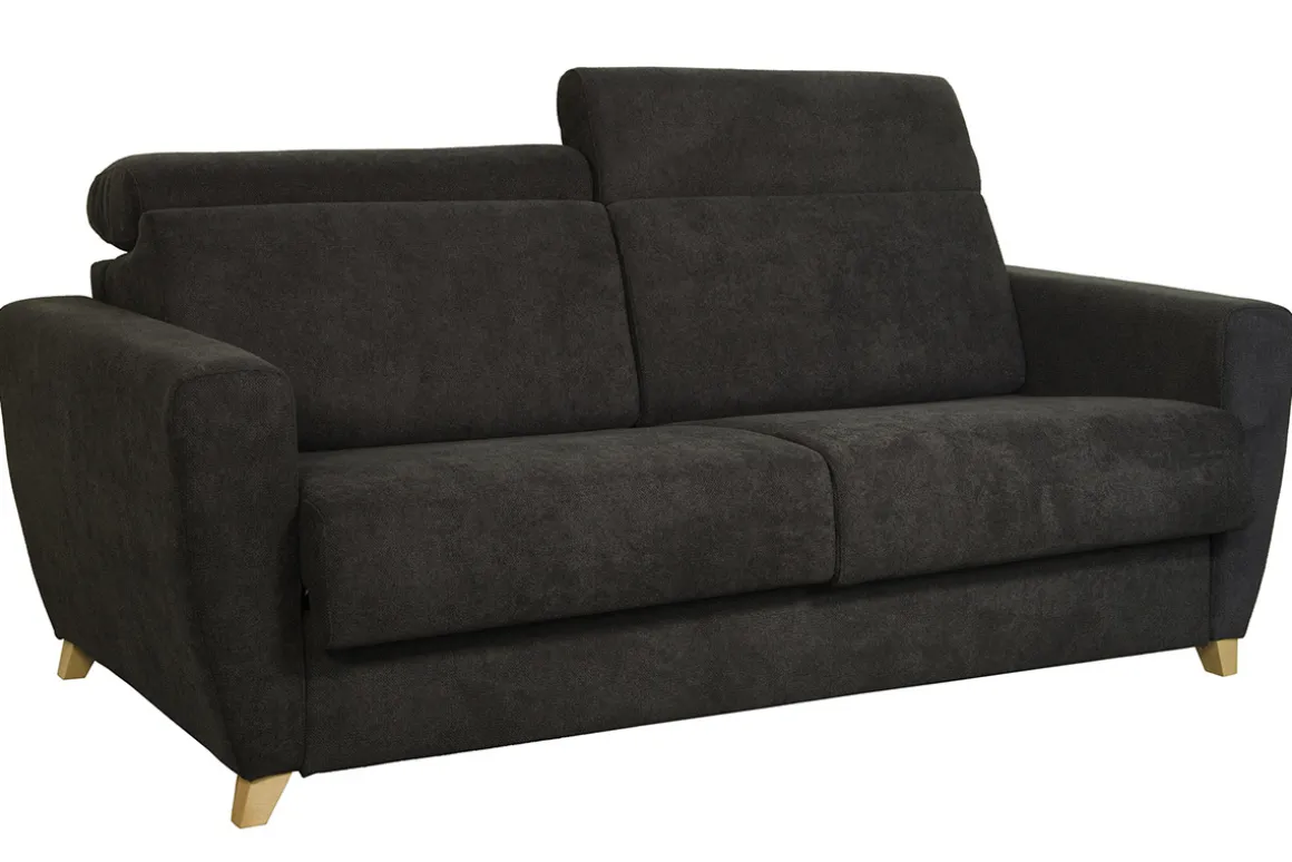 Ce canapé-lit fabriqué en Italie est livré prêt à monter : les accoudoirs sont à emboîter dans l’assise.