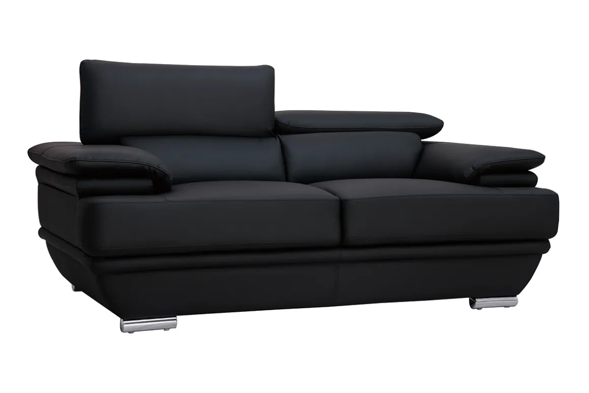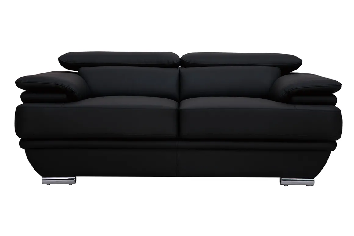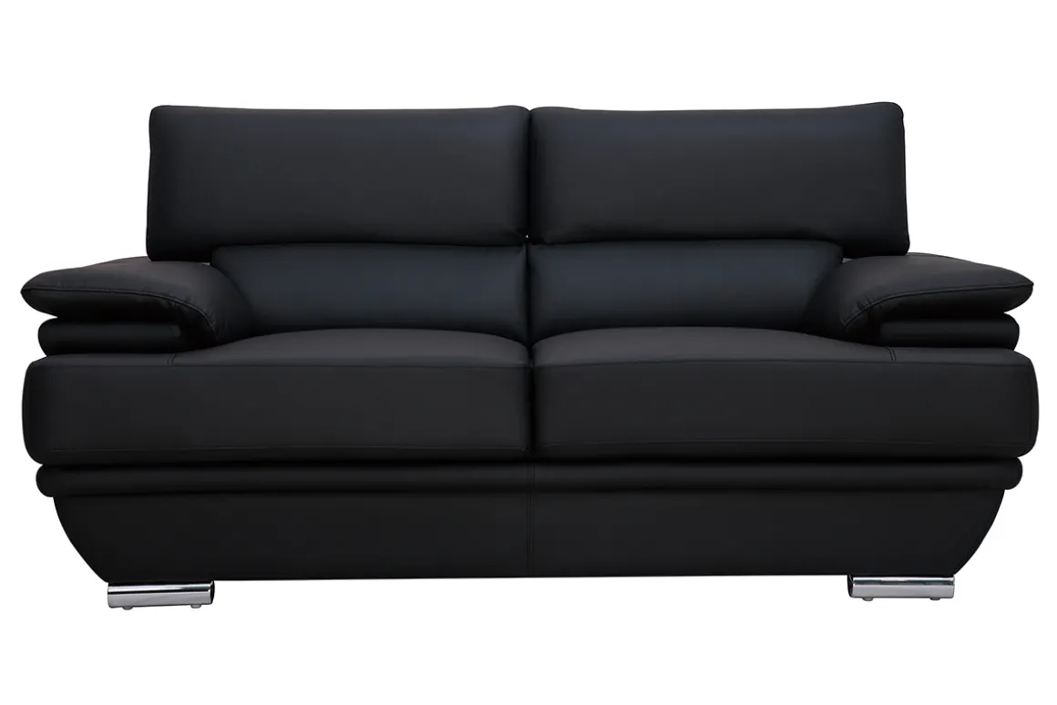Doté de têtières ajustables, d’une assise agréable (densité assise : 26 kg/m3) et de larges accoudoirs, ce beau canapé en cuir noir sera l’allié idéal de vos moments de pure détente. Il ne vous reste plus qu’ prendre place au coeur de ce canapé 2 places aussi beau que confortable.