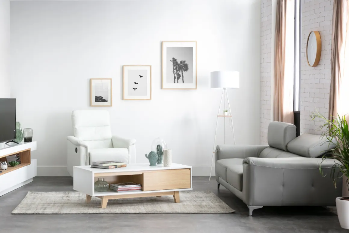 Dans le salon, ce canapé 3 places en cuir fera forte impression. Meuble TV blanc laqué et table basse minimalistes seront parfaitement mettre en valeur ce canapé en cuir véritable !