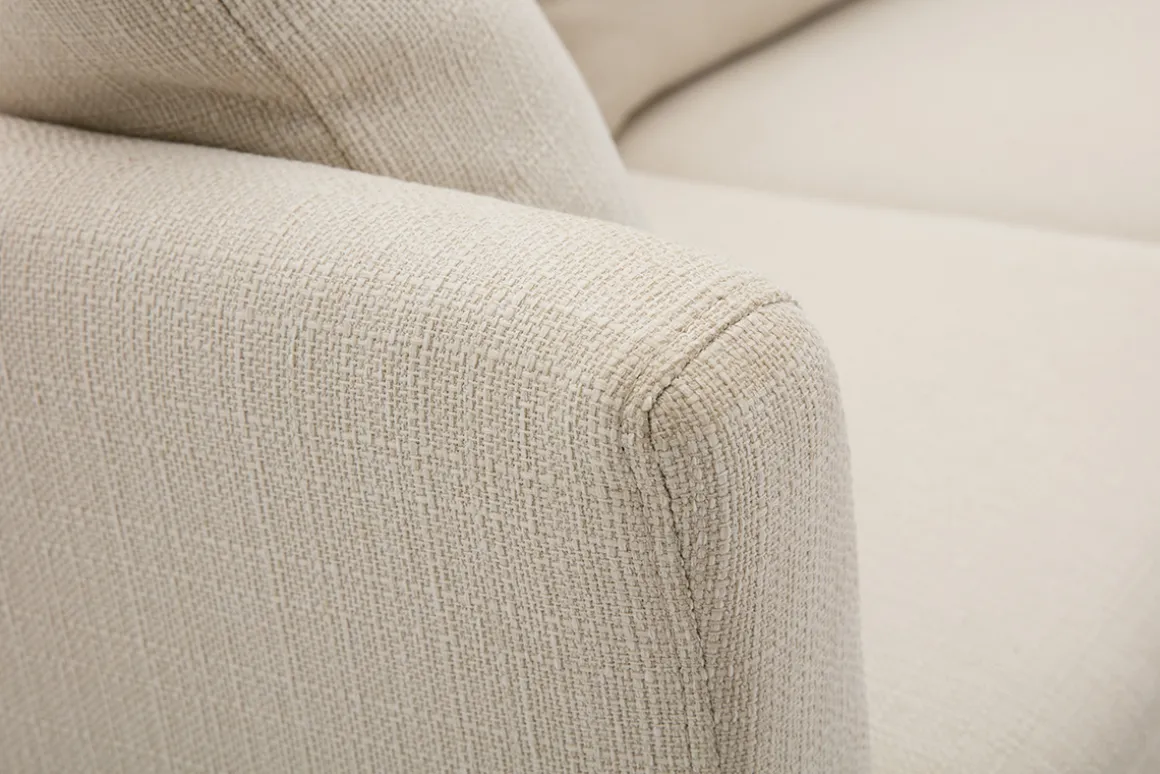 Avec sa jolie couleur, ce canapé scandinave beige est une pièce déco qui donnera de l’allure au séjour. Le détail qui fait tout son look ? Le piètement en bois clair subtilement mis en valeur par le revêtement en tissu (100% polyester).