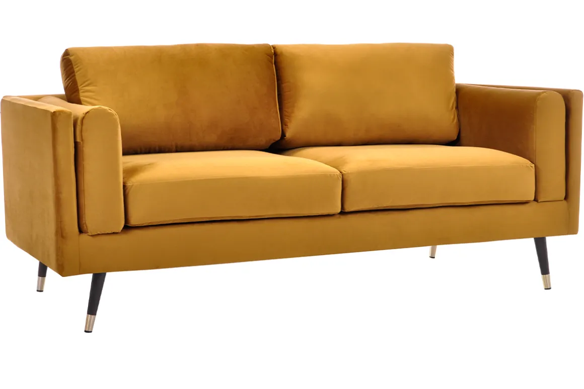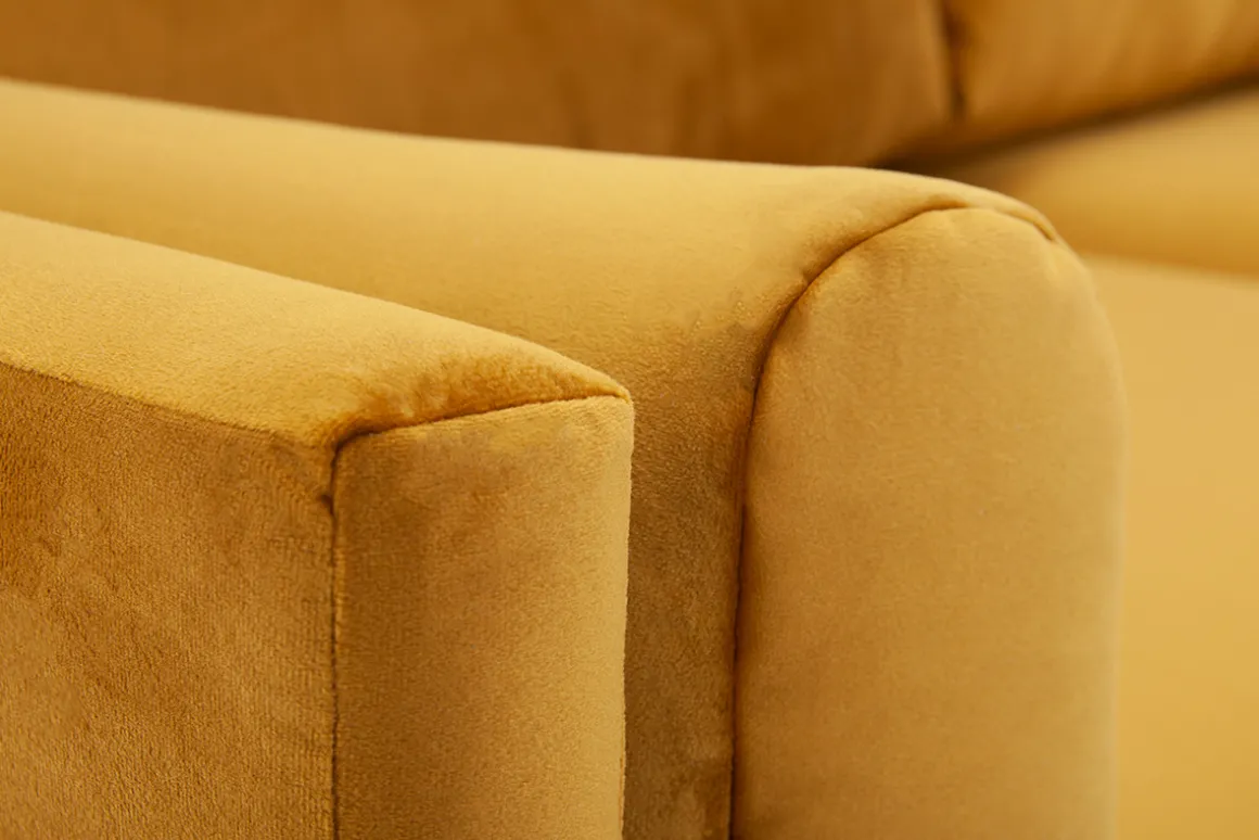 STING détient tous les secrets du style rétro chic. Habillé d’un soyeux revêtement en velours jaune, ce canapé 2 places envoûte autant qu’il rythme notre intérieur. Si ce doux tissu à la teinte profonde lui confère un look très glamour, ses lignes modernes aux finitions parfaites soulignent toute son élégance.
